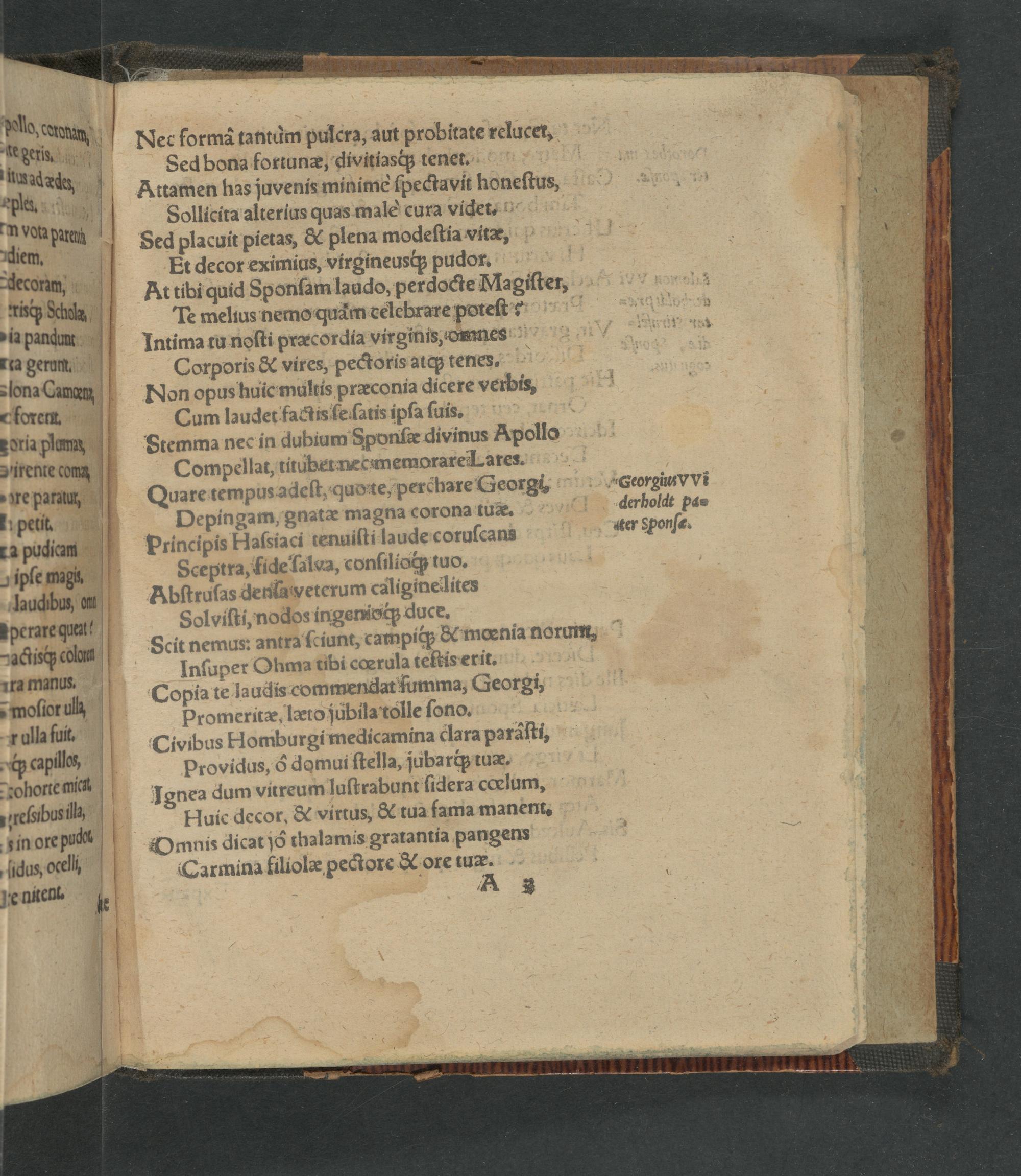 ria gerum. Corporis& vires, pectoris aiq; tentes. lona Camam Non opus huic multis præconia dicere verbis, cforeä. Cum laudet facits ſe ſatis ipſa ſuis. Soria lomg Stemma nec in dubium Sponſæ divinus Apollo— S'irente comg Compellat, titübet necmemorare Lares. *re paratuh Quare tempus adeſt, quotte, perchare Georgi SeorgiusV Vi Ipetit b Depingam, gnatæ magna corona tuæ. derholdt pas ta pudicam Principis Haſsiaci tenuiſti laude coruſcans ter gponſe. ipſe magis Sceptra, fide ſalva, conſilioc; tuo.