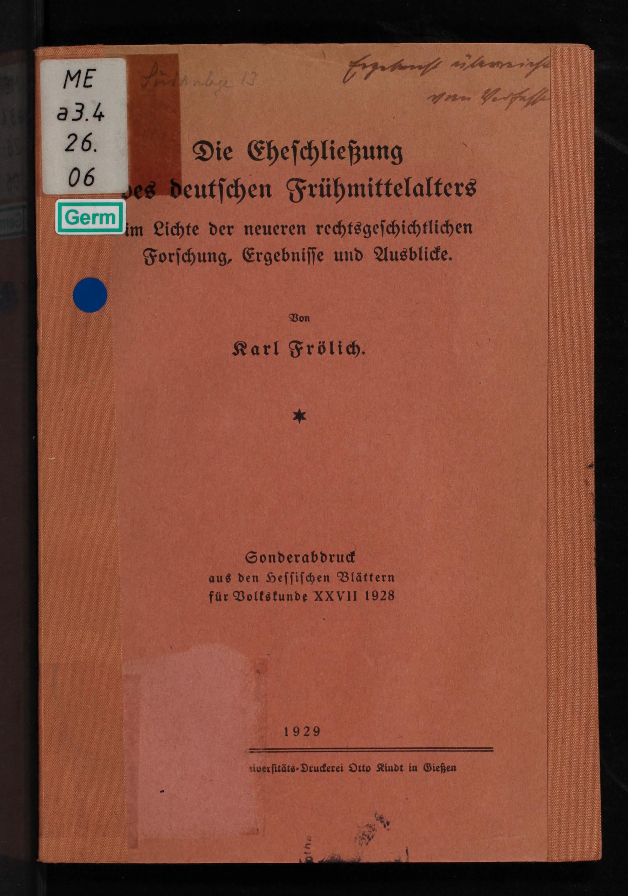 Die Eheſchließung eutſchen Frühmittelalters