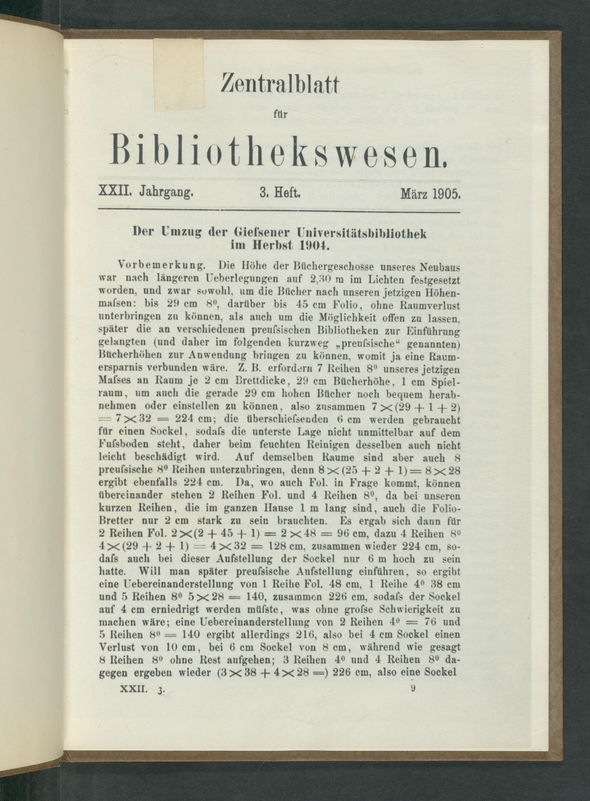 Bibliothekswesen. XXII. Jahrgang. 3. Heft. März 1905.
