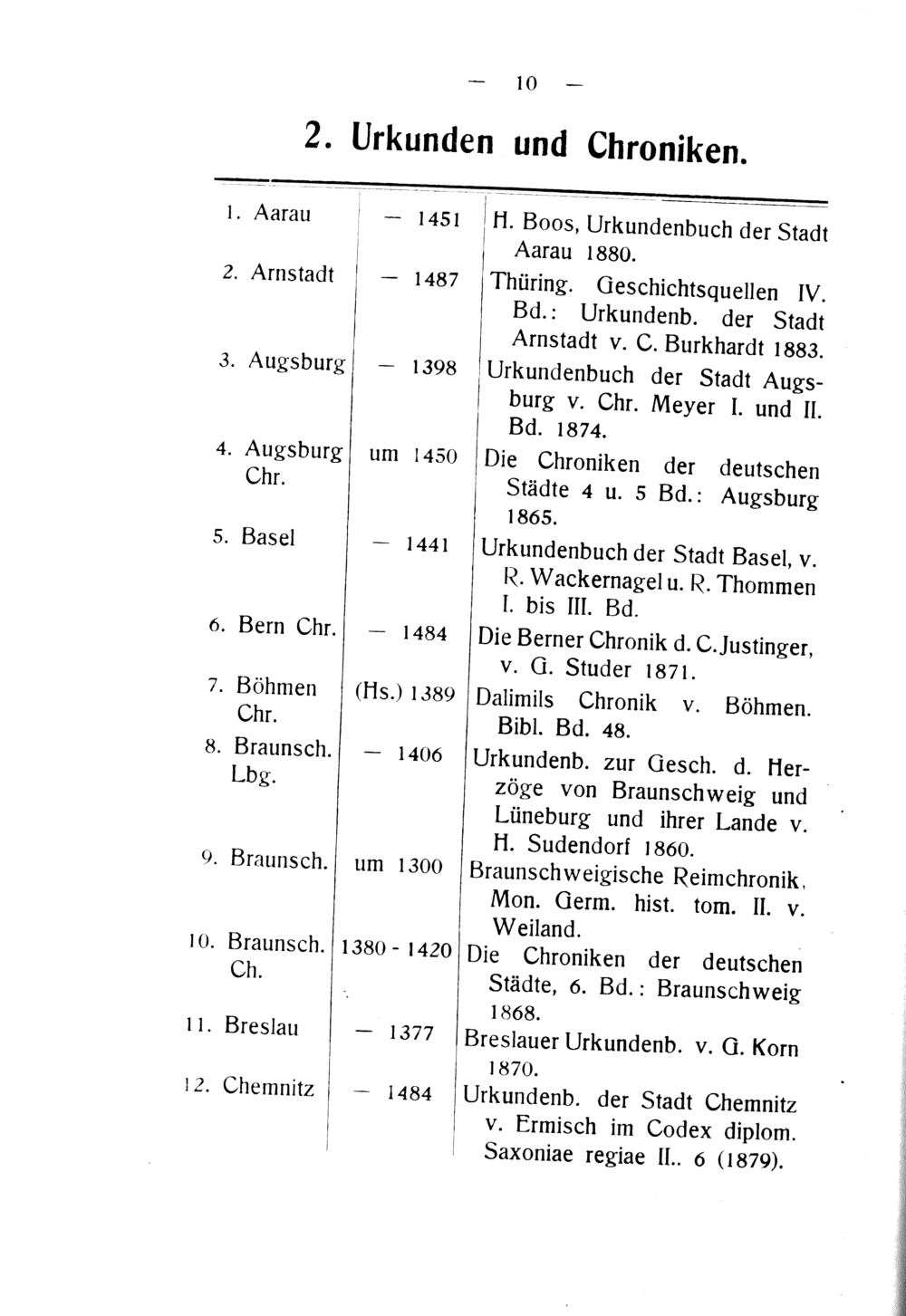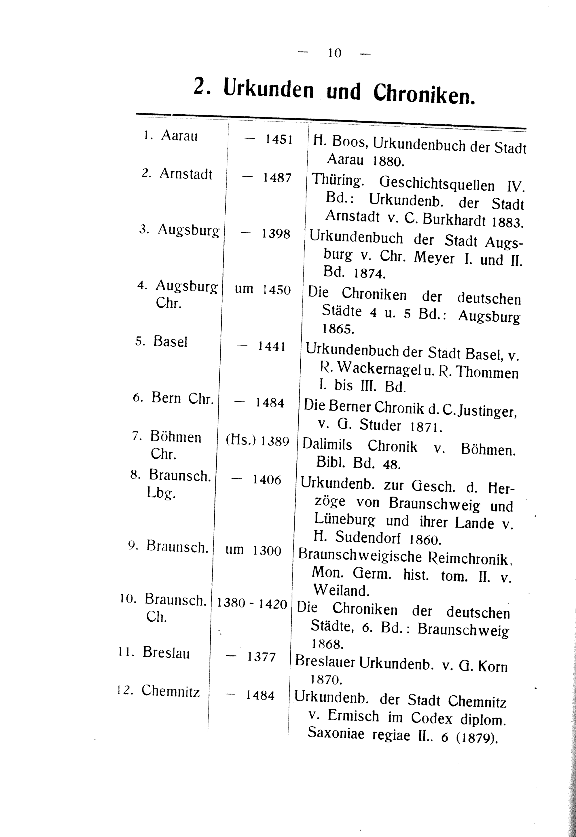 V 2. Arnstadt— 1487 3. Augsburg— 1398 4. Augsburg um 1450 Chr. 5. Basel— 1441 6. Bern Chr.— 1484 7. Böhmen(Hs.) 1380 Chr. 8. Braunsch.— 1406 LCbg. 0. Braunsch. um 1300 10. Braunsch. 1380- 1420 Ch. 11. Breslau— 1377 12. Chemnit⸗— 1484