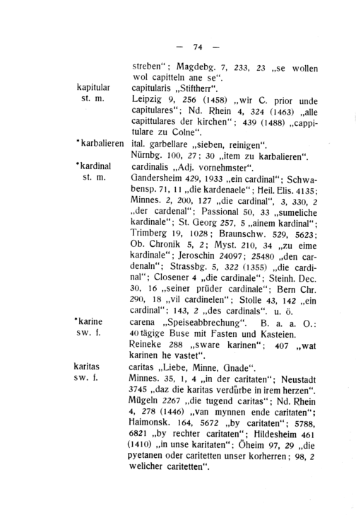 carena„Speiseabbrechung“. B. a. a. O.: 40 tägige Buse mit Fasten und Kasteien. Reineke 288„Sware karinen“; 407„wat karinen he vastet“.