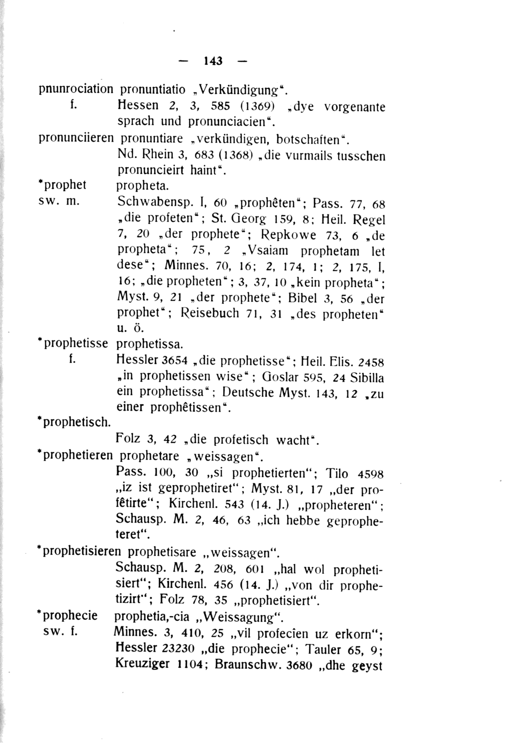 SW. f. Minnes. 3, 410, 25„vil profecien u= erkorn“; Hessler 23230„die prophecie“; Tauler 68, 9; Kreuziger 1104; Braunschw. 3680„dhe geyst