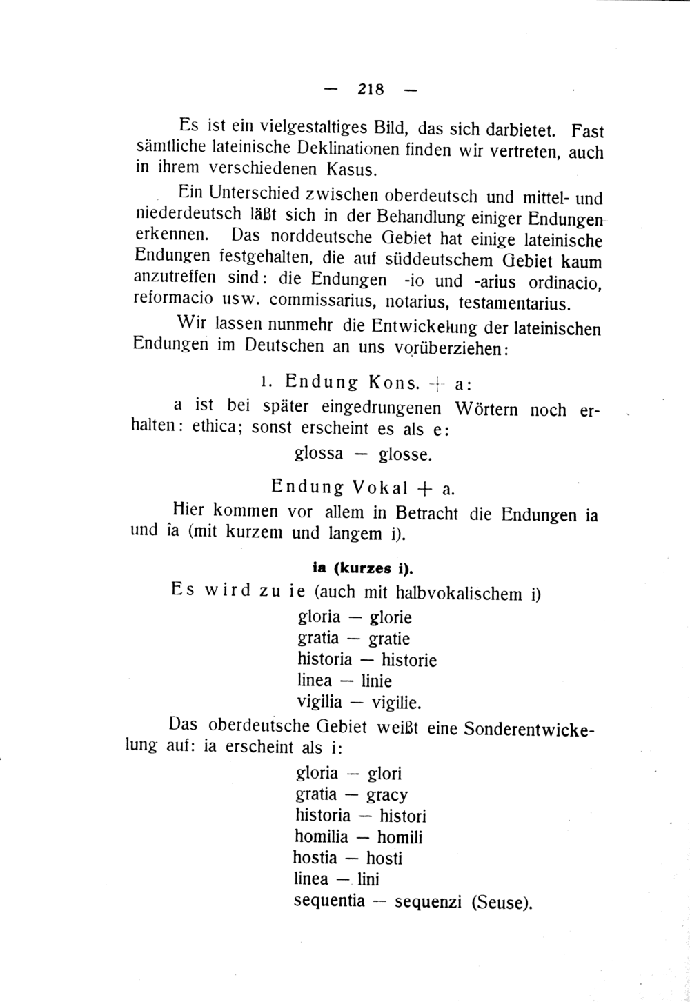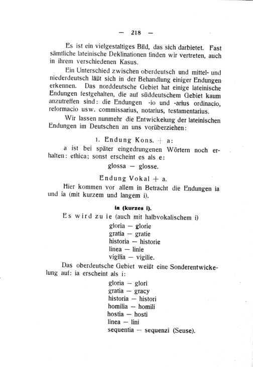 ia(kurzes i). Es wird zu ie(auch mit halbvokalischem i) gloria— glorie gratia— gratie historia— historie linea— linie vigilia— vigilie. Das oberdeutsche Gebiet weißt eine Sonderentwicke- lung auf: ia erscheint als i: gloria— glori gratia— gracy historia— histori homilia— homili hostia— hosti linea— lini sequentia— sequenzi(Seuse).