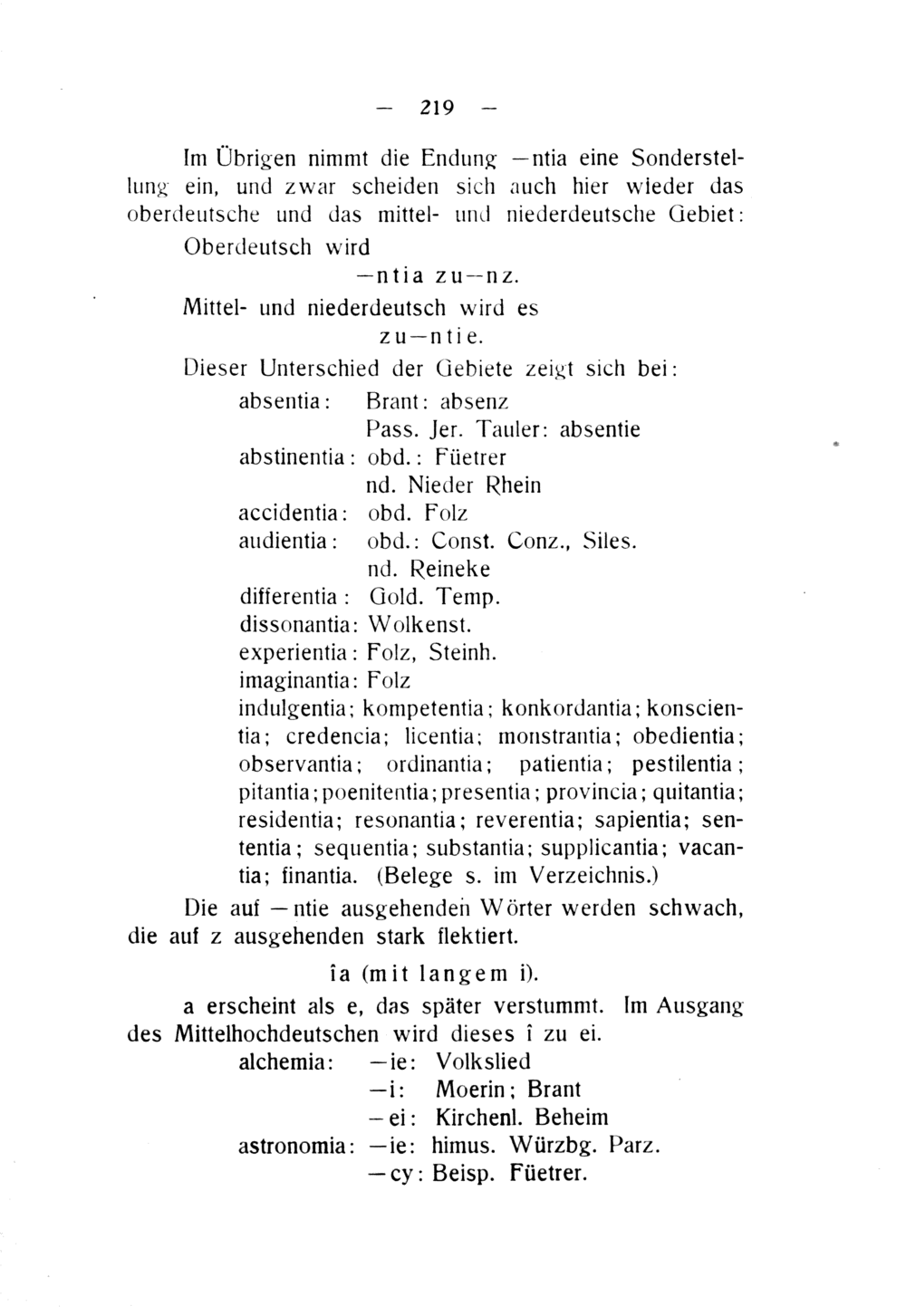 nd. Reineke differentia: Gold. Temp. dissonantia: Wolkenst. experientia: Folz, Steinh. jmaginantia: Folz indulgentia; kompetentia; konkordantia; Konscien- tia; credencia; licentia; monstrantia; obedientia; observantia; ordinantia; patientia; pestilentia; pitantia; poenitentia; presentia; provincia; quitantia; residentia; resonantia; reverentia; sapientia; sen- tentia; sequentia; substantia; supplicantia; vacan- tia; finantia.(Belege s. im Verzeichnis.)