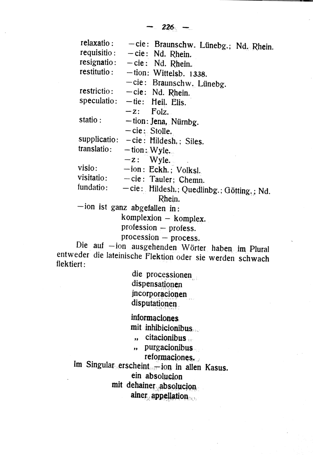 Im Singular erscheint— ion in allen Kasus.