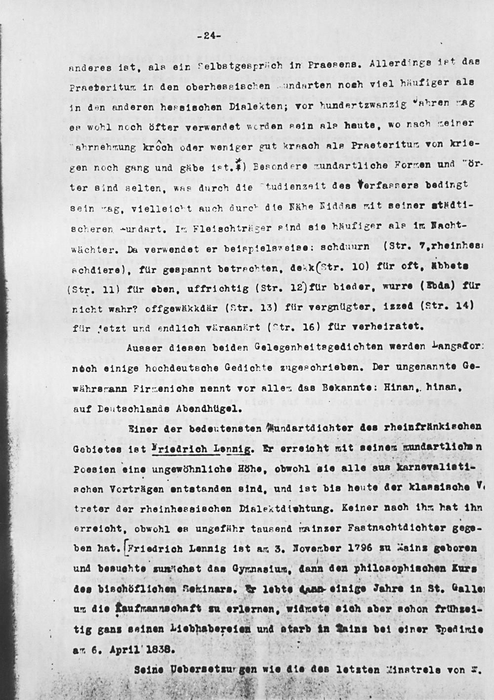 Riner der bedeutens ten Aundartdichter des rheinfräünkischen dQebietes ist Iriedrich Lennig. Er erreio ht nit„oinem wunqartliomn