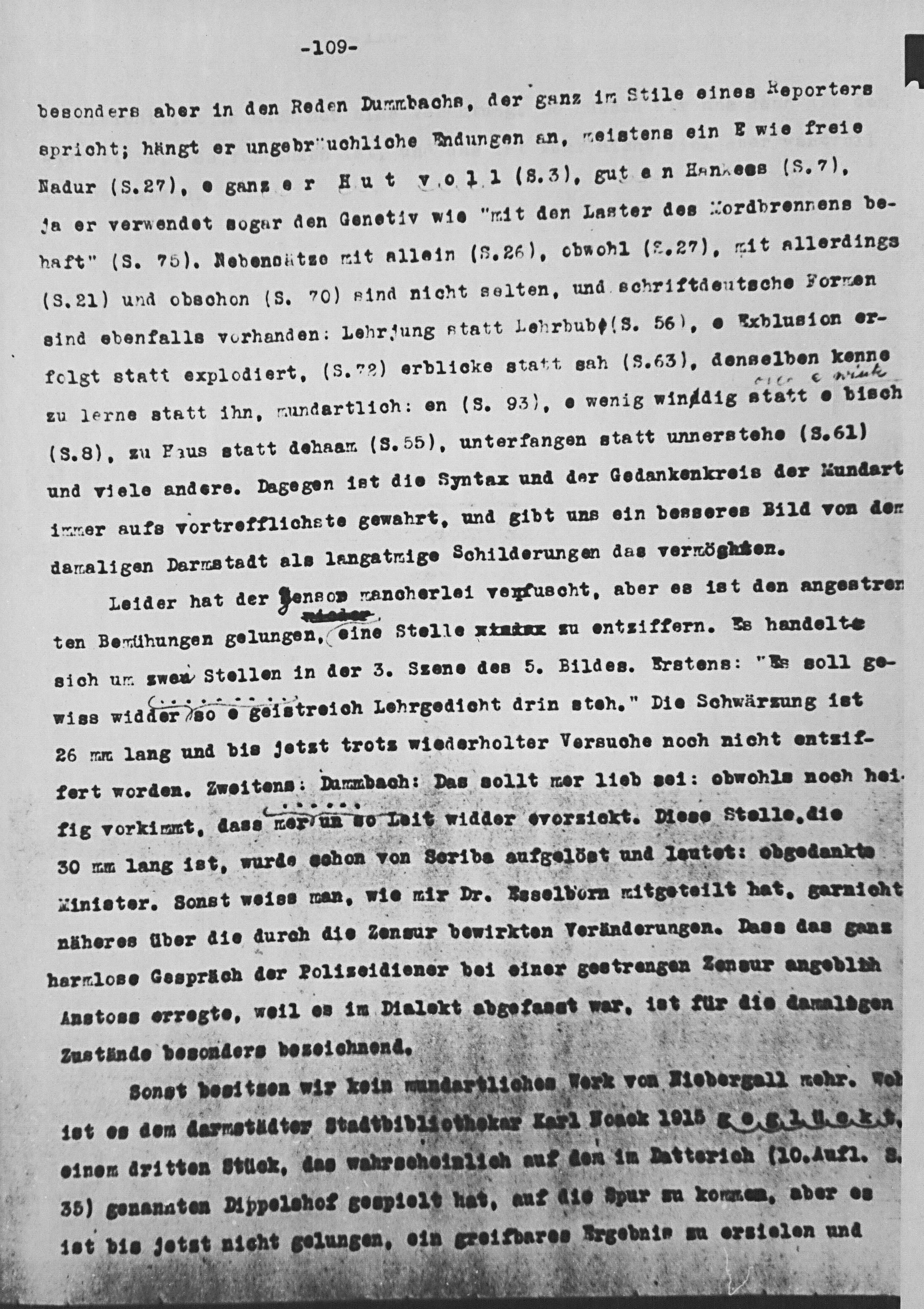 ten Benihungen gelungen, oine Stelle tak su entziffern. s handelte sich um swen, Stellen in der 3. szene des 5. Bildes. Erstens: ☛ 8011 go- wiss wid Ter so geistreich Lehrgedieht drin stehn. Die Schuärsung i 8t