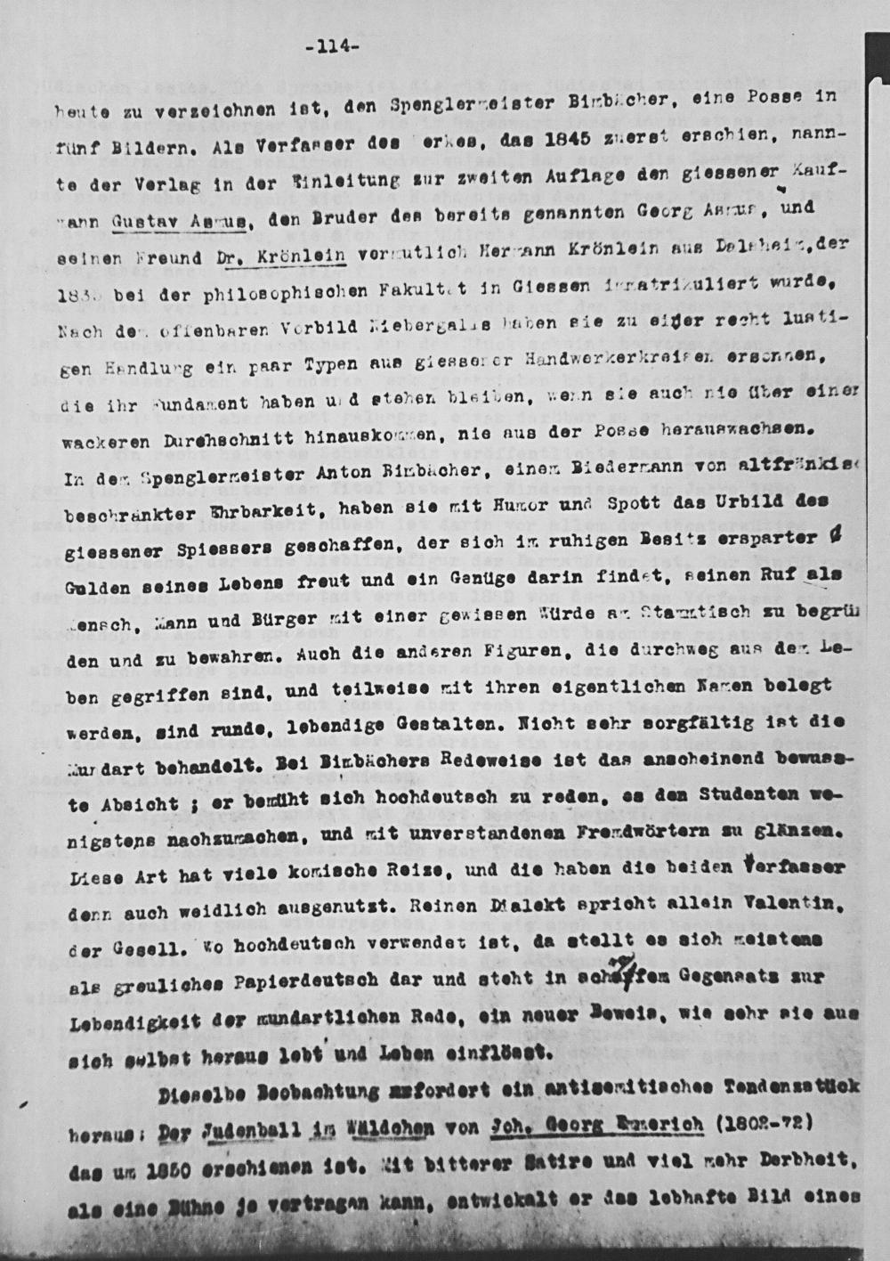 peute zu verzeichnen iet, den 3pengler elster Binbicher, eine Posse in rimf Bildern. Ale verfasser des er es, das 1845 zueret erschien, nann- te der verlag in der tinleitune sur zwolten Auflage den glessen er Kauf- ann duetav Asrua, den Bruder des dereits genannten Gecrg Ahtur, una seinen Preund br. Krönlein vor utlich Her ann Kkrönlein aus Lo 14 161 7, der 183., vei der philosophisochen Fakultet in Giessen 1 ratri ulier“ vurdoe, Rach de Oflenbaren Vorbild niebergalas tiben eie zu elyer recht 1us t1- Ssen Eendlurg eir paar Pypen aus giessoncr Handwerkerkrai er. ersensen, die ihr undament naben u d stehen bléiven, wern ele auc! m10 lher oin er wackeren Durenschnitt hinauskownen, nie aus der Poe herauszachsen.