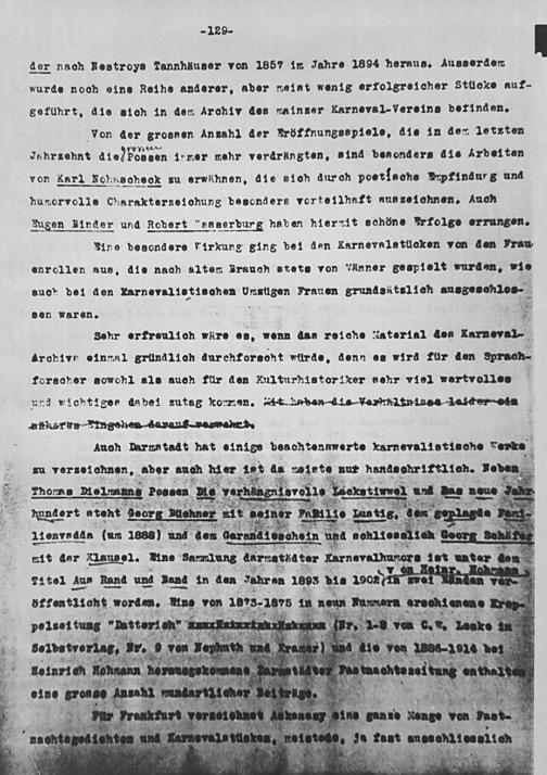 der nach Nestroye Tannhäuser von 1857 im Jahre 1894 heraue. Ausserdem wurde noch eine Reihe anderer, aber neiat wenig erfolgreicher Stüoke auf- geführt, die aich in dem Archiv des nainser Karneval-Veroins berinden. Von der grosnen Anzanl der Rröffnungsepiele, die in der 1etzten Jahrzehnt d107Poseen irner mehr verdrüngten, sind besonders die Arbeiten von Karl Nchascheck su erväühnen, die sich dur ch pootſsche Prpfindurg und huworvolle Charakterzeichung boeonders vorteilhaft auszeichnen, Auch