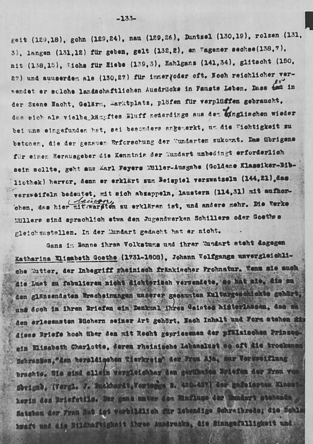 geit(129, 18), gohn(129, 24), nau(129, 26). Duntsel(130, 19), rolzen(131. 3)., 1angen(131, 12) für geben, Ge1t(132, 2), en Tagener sochse(138, 7), nit(138, 15), viohs fur Iiebe(19, 3), Hanlgans(141, 34), glitscht(150, 27) und auuserden ale(130. 27) für imer ſoder oft. Sooh reichlicher ver- wendet er eclche landschaftäichen Ausdrücke in Pausts Loeben. Dass in der Ssene Jacht, Gelürn, Sarktplatz, plöfen für verplldfen gebraucht, dus dioh ale vielba künpftes Sluff neuderdings aus 4 Unglia chen ui eder dei uns eingefunden pet, eei deeondere angkenerkt, un d1 richtigkeit su vetonen, die der gensuen Erfcrschung der rundarten zukonmt. Das Hbrigens rur einen Herauegeber die Kenntnie der undart unbed ingt erforderlich