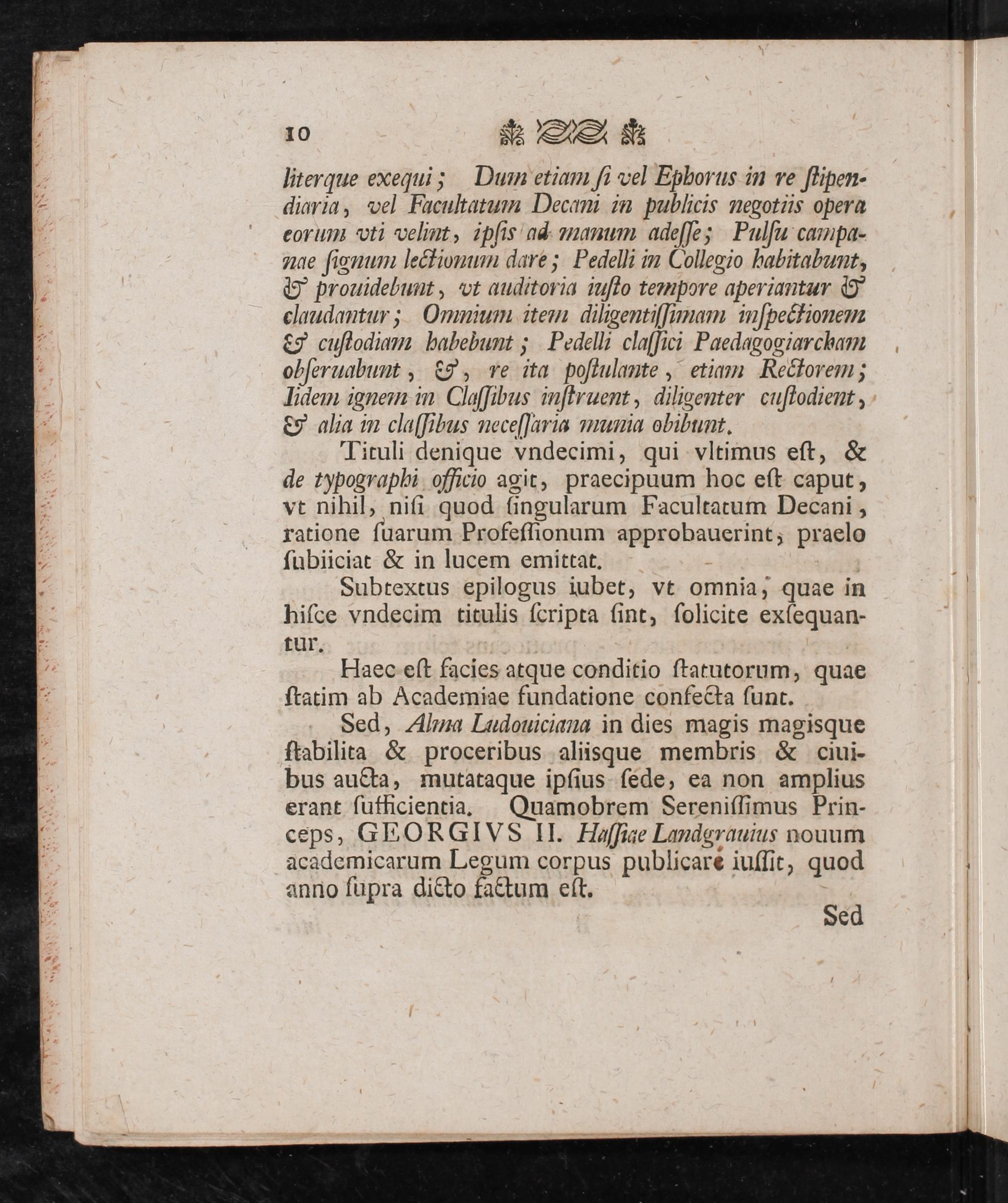 Academiae Lvdovicianae Rector Lvdov. Godofr. Mogen Doctor ivridicvs et Professor Historicvs , de Statvtis Antiqvis Academiae Gissenae Pavca Praelibat, Ex Iisqve Excerpta Exhibet, et ad Pvblicam Pro Restitvta Pace Deo Referendam Gratiam Avdiendamqve Orationem de Statvtis Academiae Gissenae Hodiernis a se Habendam Solemnemqve Legvm Academicarvm Praelectionem qvae Vno Eodemqve Actv Ipsis Calendis Ivlii B.C.D. Institventvr, Academiae Proceres, Literatvmqve Favtores Qvoslibet, Item Omnivm Facvltatvm Stvdiosos Generosissimos et Nobilissimos ea, Qva Decet, Observantia Atqve Hvmanitate Invitat. Pvblicatvm Dom. IV. Post Festvm Trinitati Sacrvm, Anno MDCCLXIII. Sub Sigillo Academiae Maiori. / Ludov. Godofr. Mogen