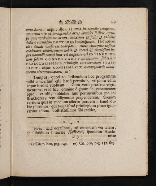 Academiae Lvdovicianae Rector Lvdovicvs Godofredvs Mogen, Doctor, Professor Et Consiliarivs Avlicvs, De Tempore, Qvo Academia Marbvrgensis Privilegia Caesarea Impetraverit, Pavca Preafatvr, Et Ad Celebranda Academiae Sollemnia Permvtationi Rectoralis Dignitatis Sacra Ipso Epiphanias Die Institvenda, Omnivm Ordinvm Proceres Litterarvm Favtores, Litteratosqve Qvoslibet, Generosissimos Et Nobilissimos, Ea, Qva Par Est, Observantia Et Hvmanitate, Invitat. P.P. Ipso Circvmcisionis Christi Festo, MDCCLXIIII. Svb Sigillo Academiae Maiori. / Lvdovicvs Godofredvs Mogen