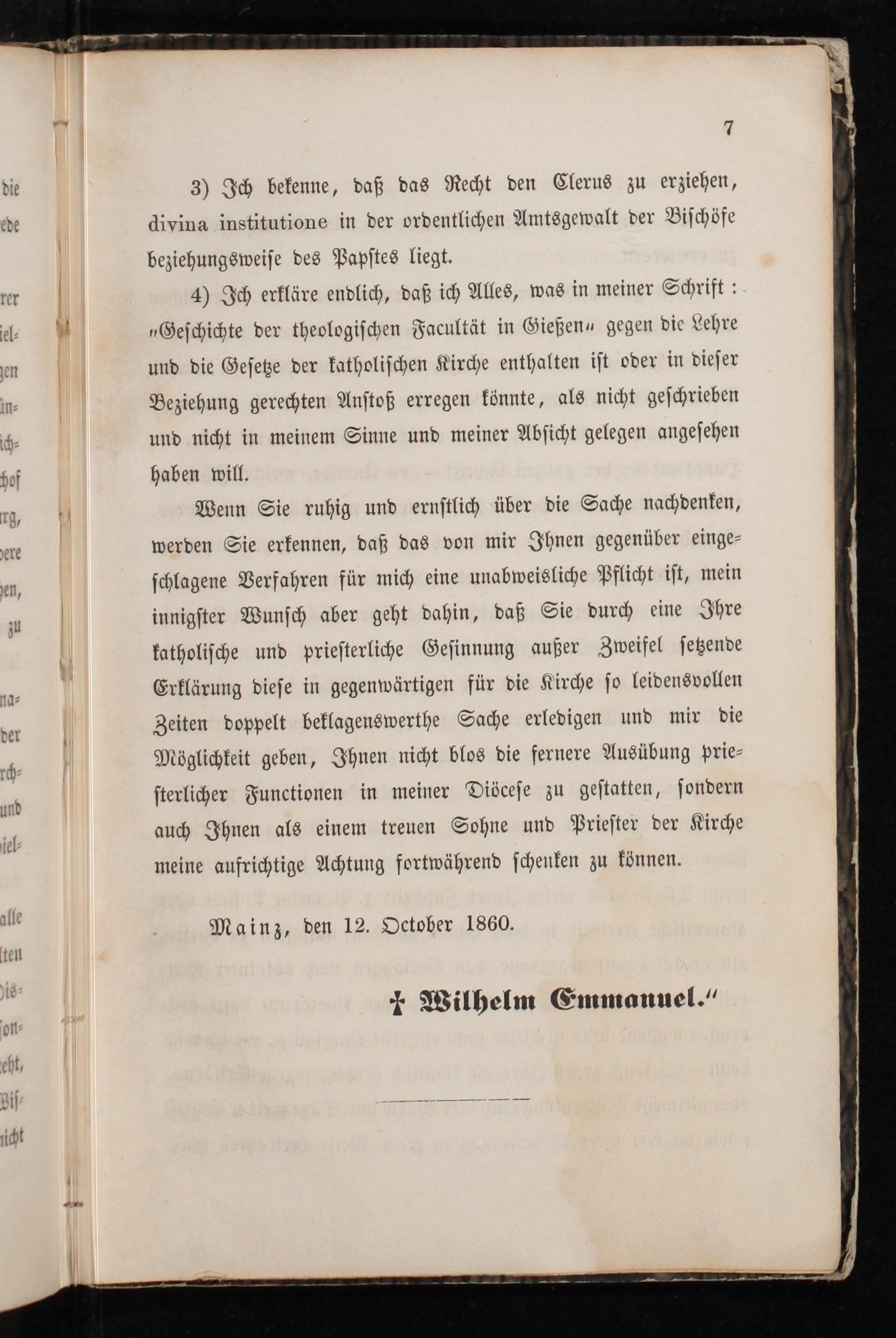 An den Herrn Bischof von Mainz, Wilhelm Emmanuel von Ketteler : Erklärung / des Prof. Dr. Lutterbeck an der Universität zu Gießen