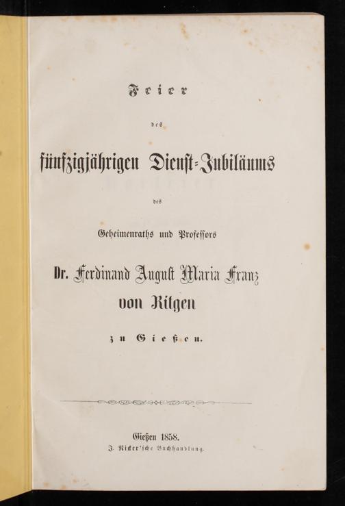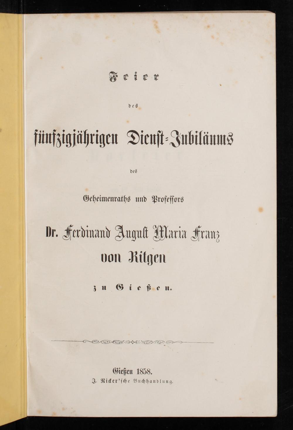 Feier des fünfzigjährigen Dienst-Jubiläums des Geheimenraths und Professors Dr. Ferdinand August Maria Franz von Ritgen zu Gießen