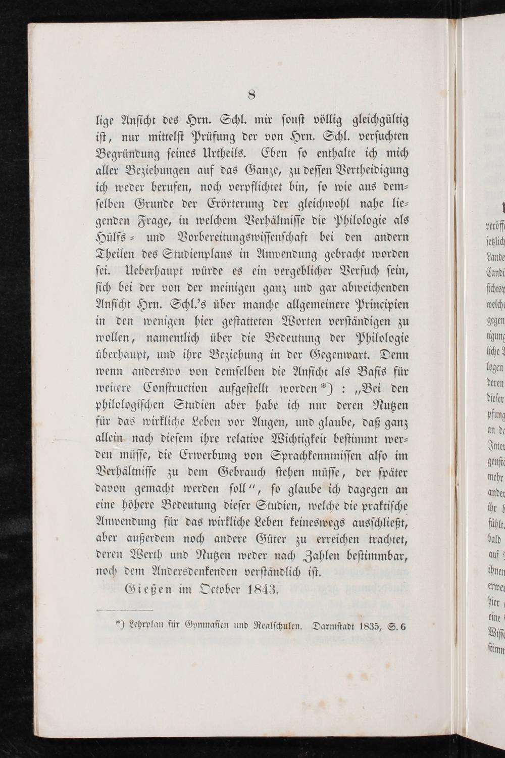 Beleuchtung der Bemerkungen des Großh. Hess. Geh. Raths Herrn Dr.A.A.E. Schleiermacher über denjenigen Theil des für die Großh. Hess. Landesuniversität zu Gießen festgesetzten Studienplans, welcher die Candidaten des Gymnasiallehramts aus dem philologischen Gesichtspunkte betrifft. / von Dr. Friedrich Osann, Professor der Beredtsamkeit und Director des philologischen Seminars an der Großh. Hess. Landesuniversität zu Gießen