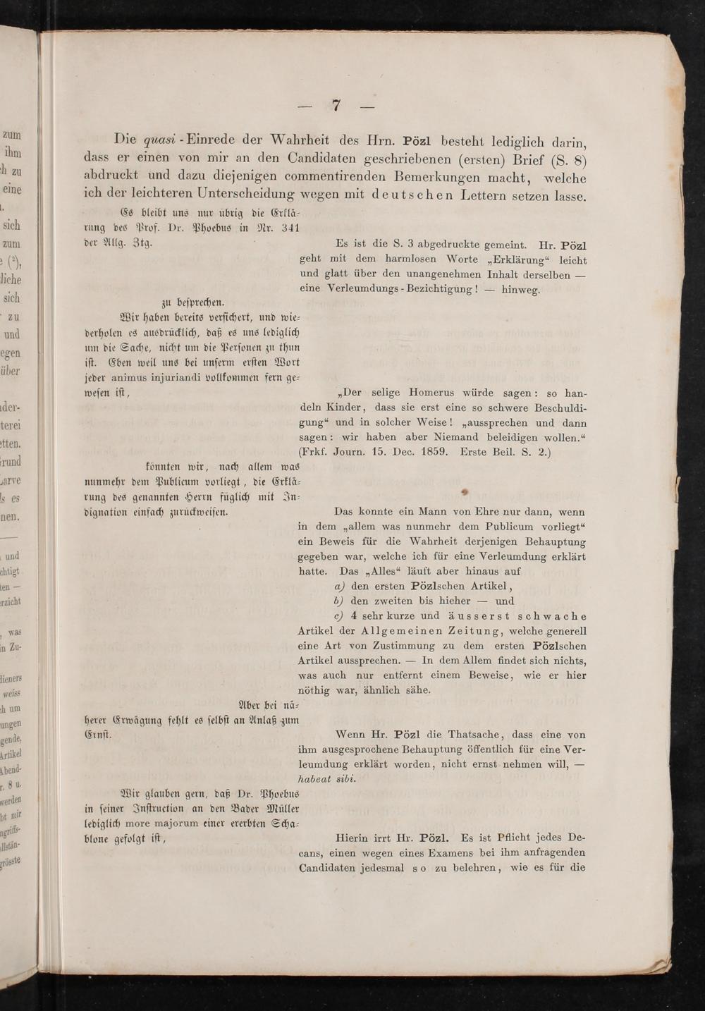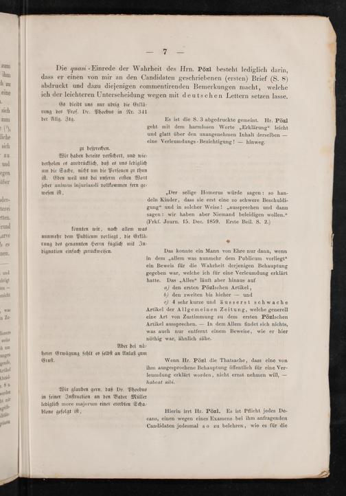 Abwehr von Schmähungen, welche Herr Dr. Joseph Pözl, o.ö. Professor f. Bayerisches Staatsrecht a.d. Köln. Bayerischen Ludwig-Maximilians-Univ. zu München, wegen einer 1859 zu Giessen vollzogenen medicinischen Promotion gegen mich gerichtet hat / von Dr. Philipp Phoebus, o.ö. Prof. d. Med. a.d. Grossherzogl. Hess. Ludewigs-Univ.