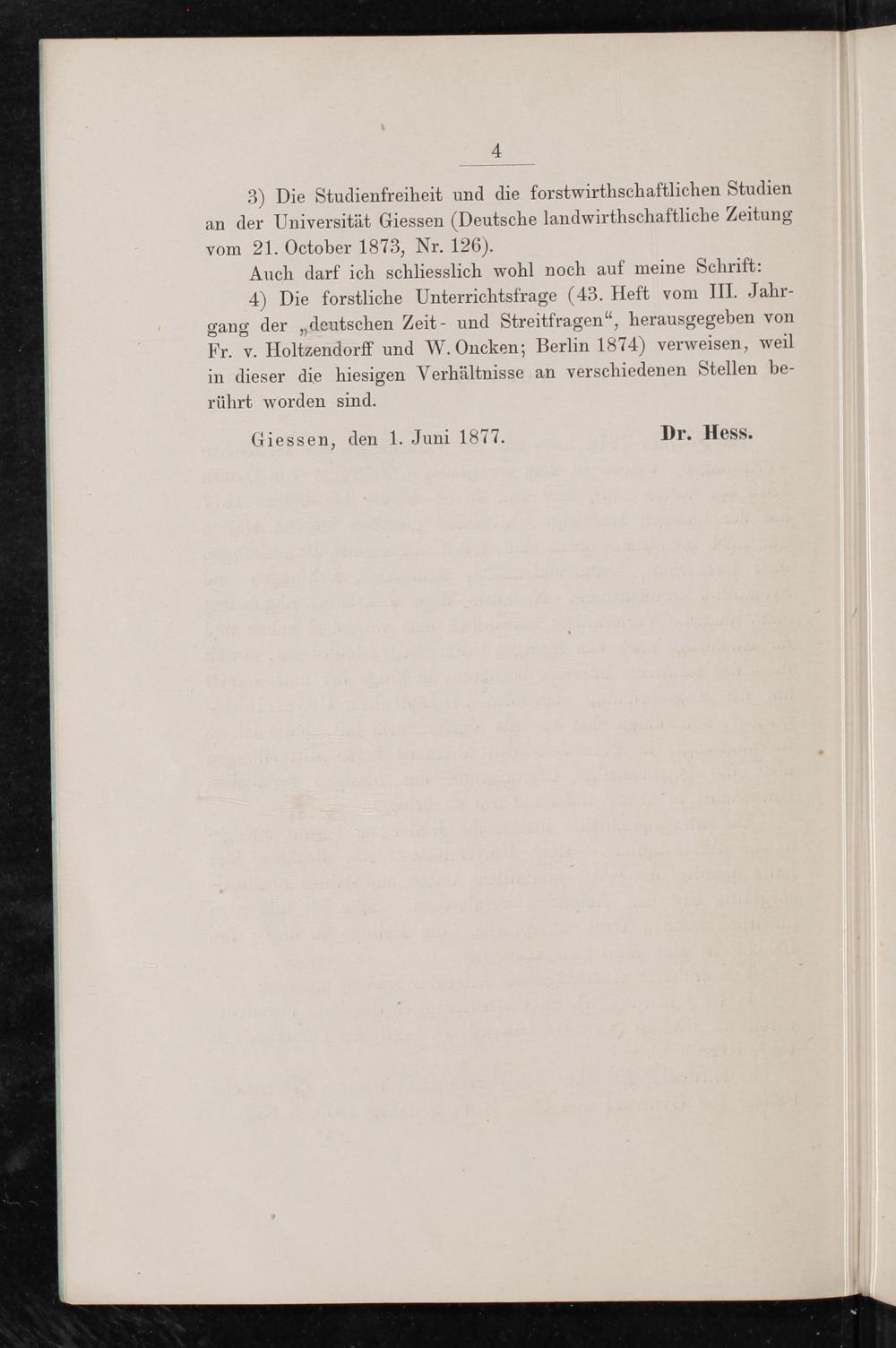 Über die Organisation des forstlichen Unterrichts an der Universität Giessen : mit einer geschichtlichen Einleitung / von Dr. Richard Hess, o.ö. Professor der Forstwirschaft an der Grossherzogl. Hessischen Ludewigsuniversität