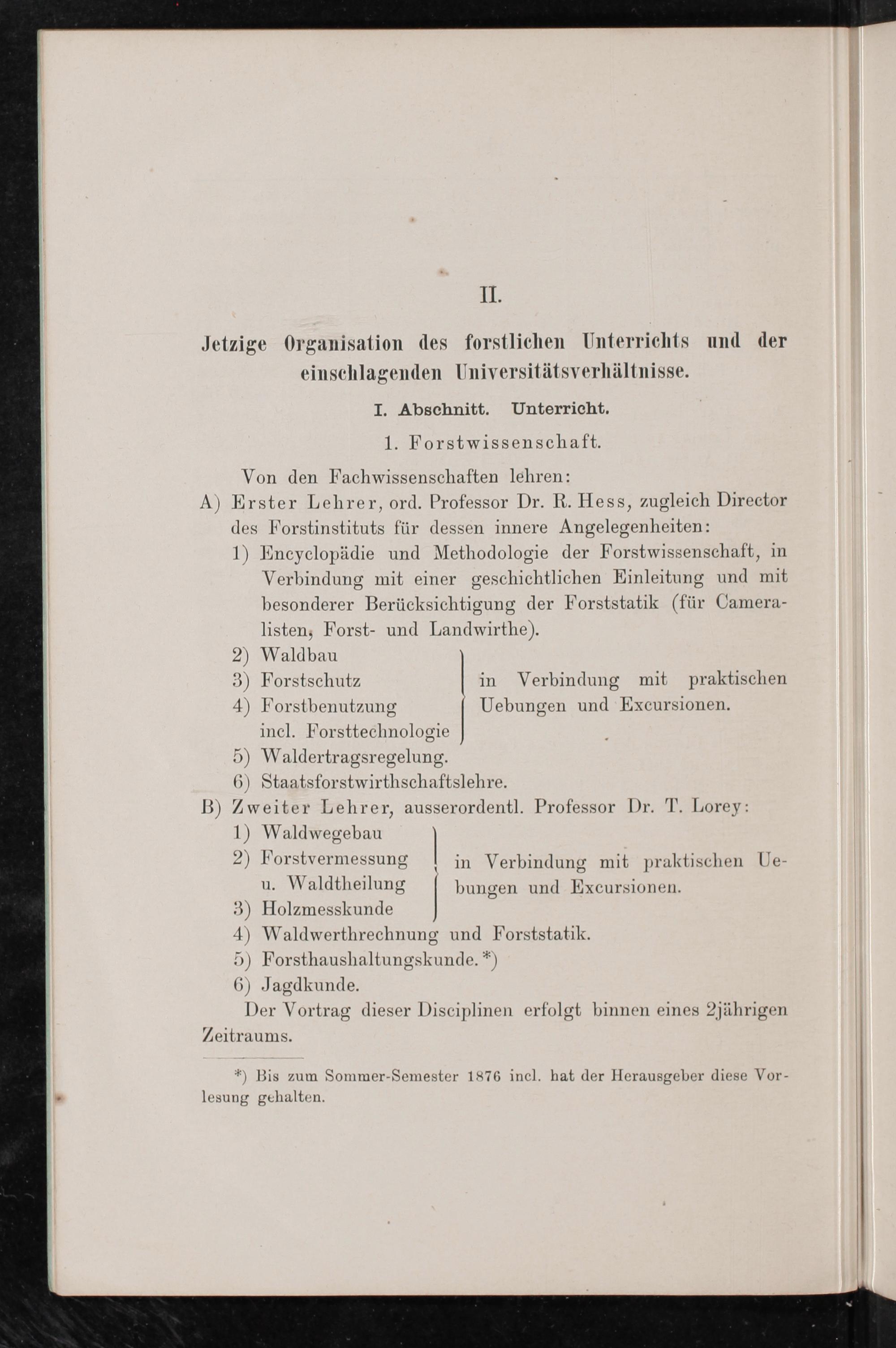 Über die Organisation des forstlichen Unterrichts an der Universität Giessen : mit einer geschichtlichen Einleitung / von Dr. Richard Hess, o.ö. Professor der Forstwirschaft an der Grossherzogl. Hessischen Ludewigsuniversität
