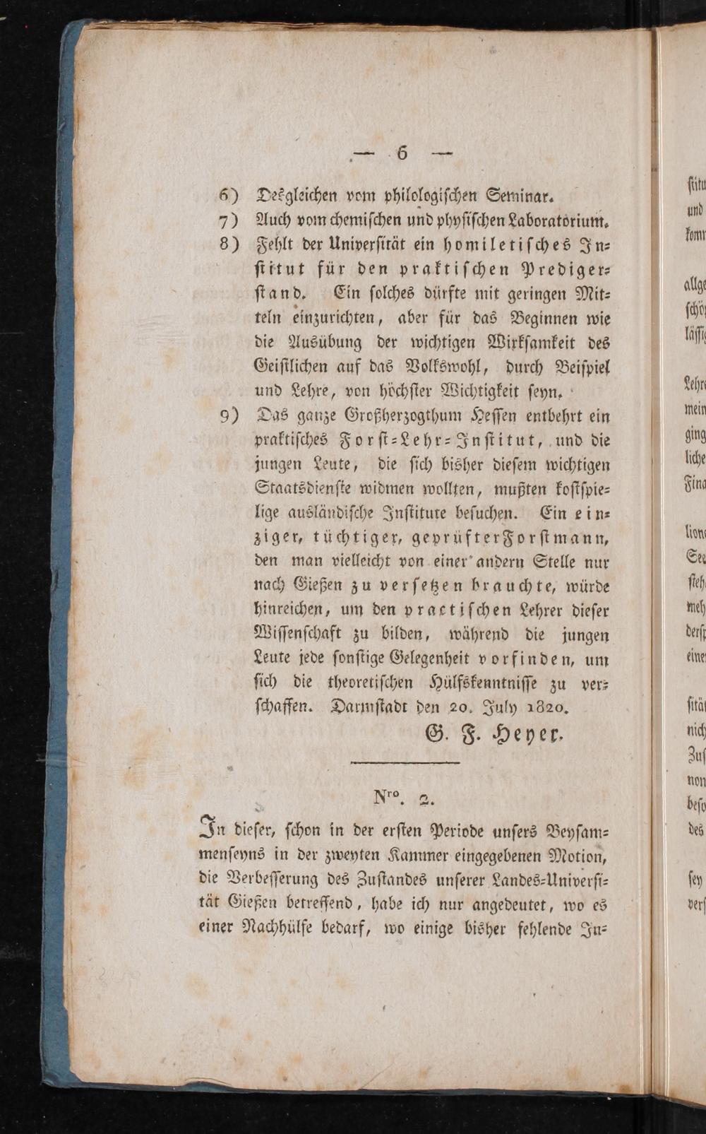 Die Landes-Universität Giessen : einige Worte für ihre Erhaltung und vervollkommnete Einrichtung : den verehrlichen Kammern der Stände, des Großherzogthums Hessen und seinen Mitbürgern gewidmet / vom Abgeordneten G. F. Heyer