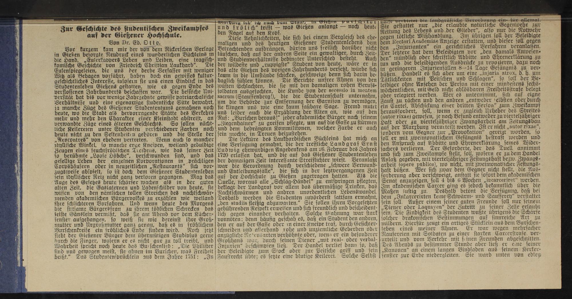 Zur Geschichte des studentischen Zweikampfes auf der Gießener Hochschule / von Dr. Ed. Otto