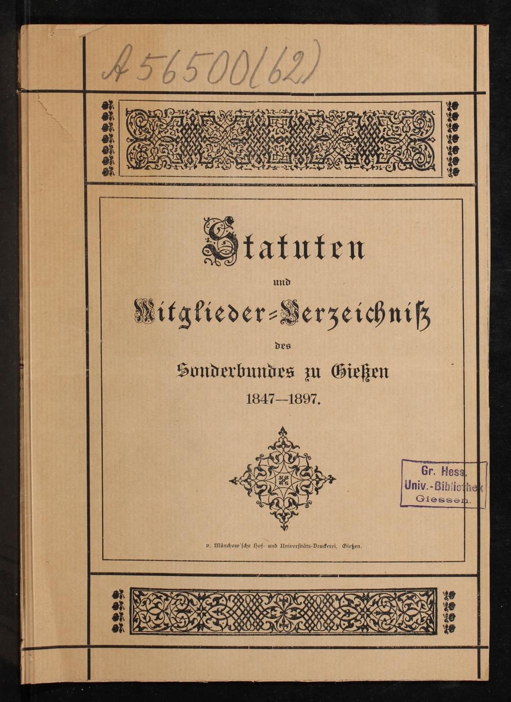 Statuten und Mitglieder-Verzeichniß des Sonderbundes zu Gießen 1847-1897