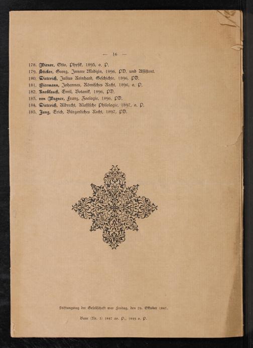 Statuten und Mitglieder-Verzeichniß des Sonderbundes zu Gießen 1847-1897