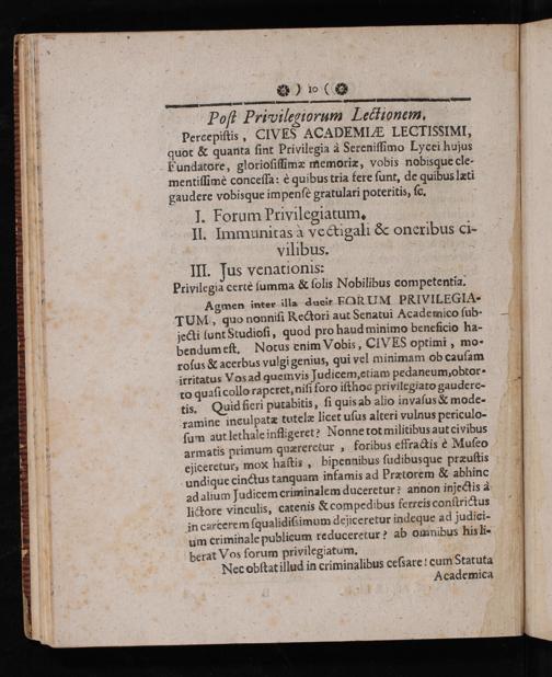 Privilegia Studiosorum Gissensium Sub Anniversaria Legum Prælectione Publice Repetita Et Oratione Panegyrica De Usu Et Abusu Privilegiorum / Fusius Explicata A Mich. Bernhardo Valentini, Archiatro Hasso-Darmstadino, Prof. Med. & Philos., Experim. Ordin. ac Rei Oeconomicæ Inspectore