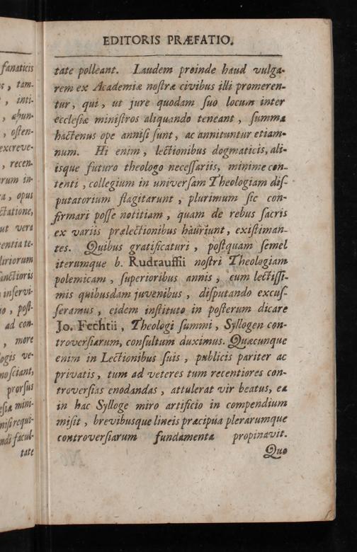 D. Joan. Fechtii, Theologi Quondam Apud Rostochienses Celeberrimi, Deque Ecclesia Puriore Immmortaliter Meriti, Selectiorum Ex Universa Theologica Controversarium Recentiorum Præcipue Sylloge / In Academia Ludwoviciana In Usum Disputandi Exercitiorum Collegiorumque Privatorum Denuo Edita A D. Reinh. Henrico Rollio, Prof. Theol. Publ. Ord. Senatus Ecclesiastici Assessore Ac Dioceseos Alsfeld. Superintendente, Facult. Theol. H. T. Decano.