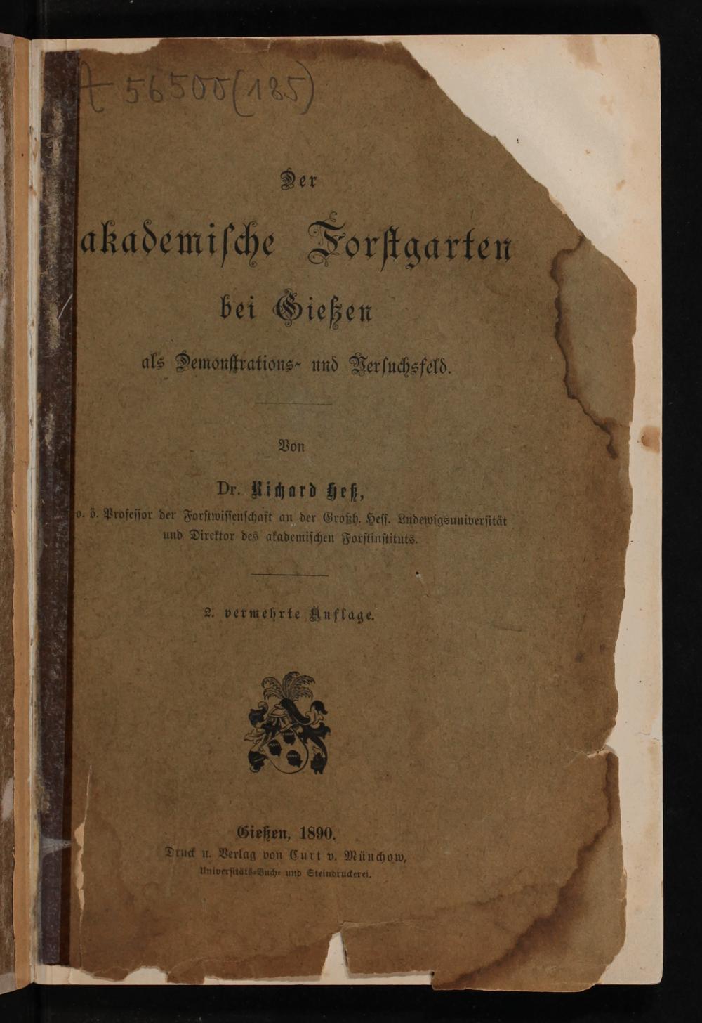 Der akademische Forstgarten bei Gießen als Demonstrations- und Versuchsfeld/ von Dr. Richard Heß, o. ö. Professor der Forstwissenschaft an der Großh. Hess. Ludwigsuniversität und Director des akademischen Forstinsituts