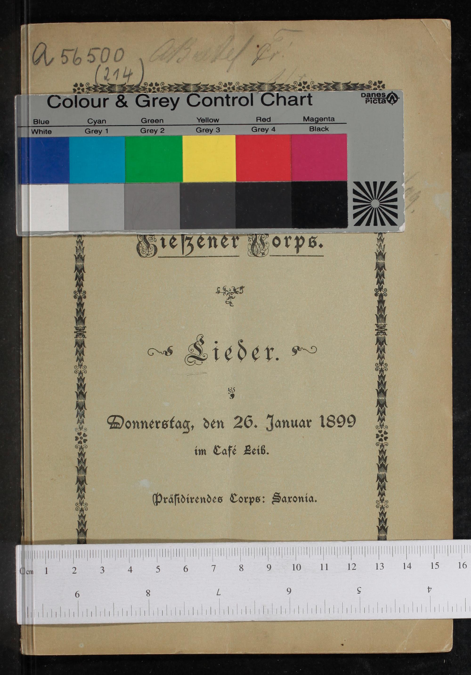Kaiser-Commers der Gießener Corps : Lieder : Donnerstag, den 26. Januar 1899 im Café Leib : präsidierendes Corps: Saxonia / [herausgegeben vom Corps Starkenburgia]