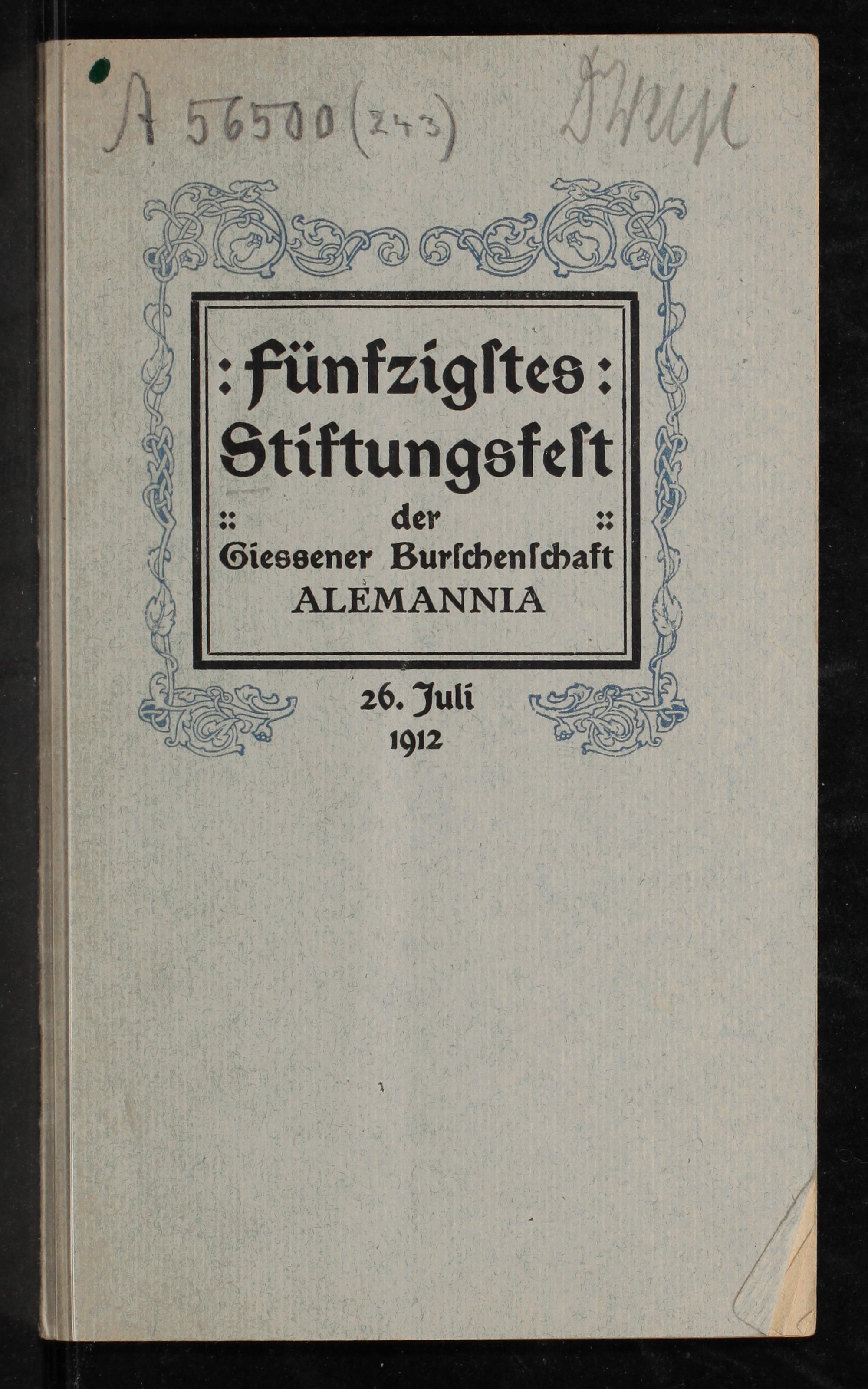 Fünfzigstes Stiftungsfest der Gießener Burschenschaft Alemannia : 26. Juli 1912 : Lieder
