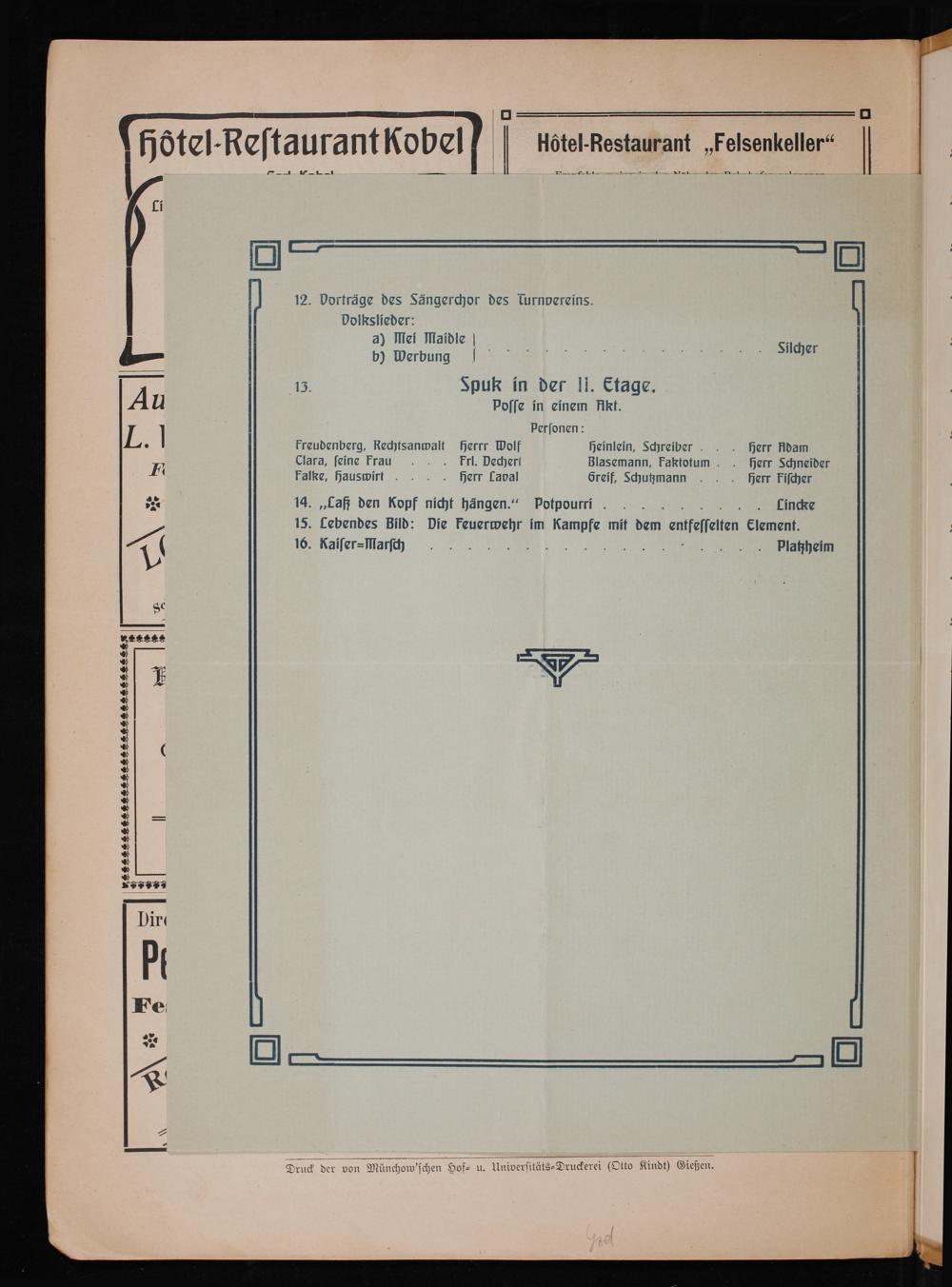 Fest-Zeitung zur Feier des 50jähr. Bestehens der beiden freiwilligen Feuerwehren in Giessen