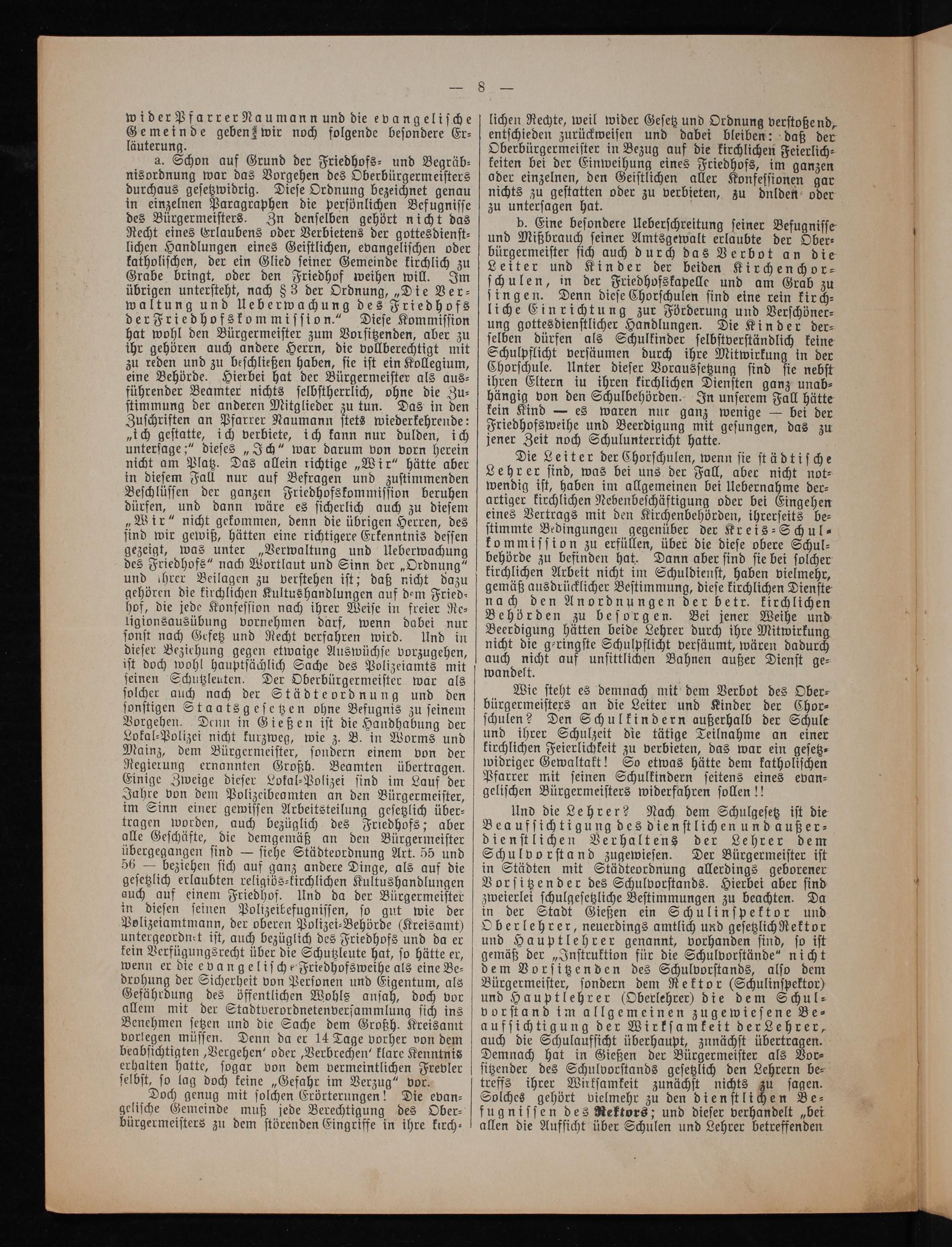 Klarheit und Wahrheit in der Angelegenheit der Friedhofsweihe zu Giessen