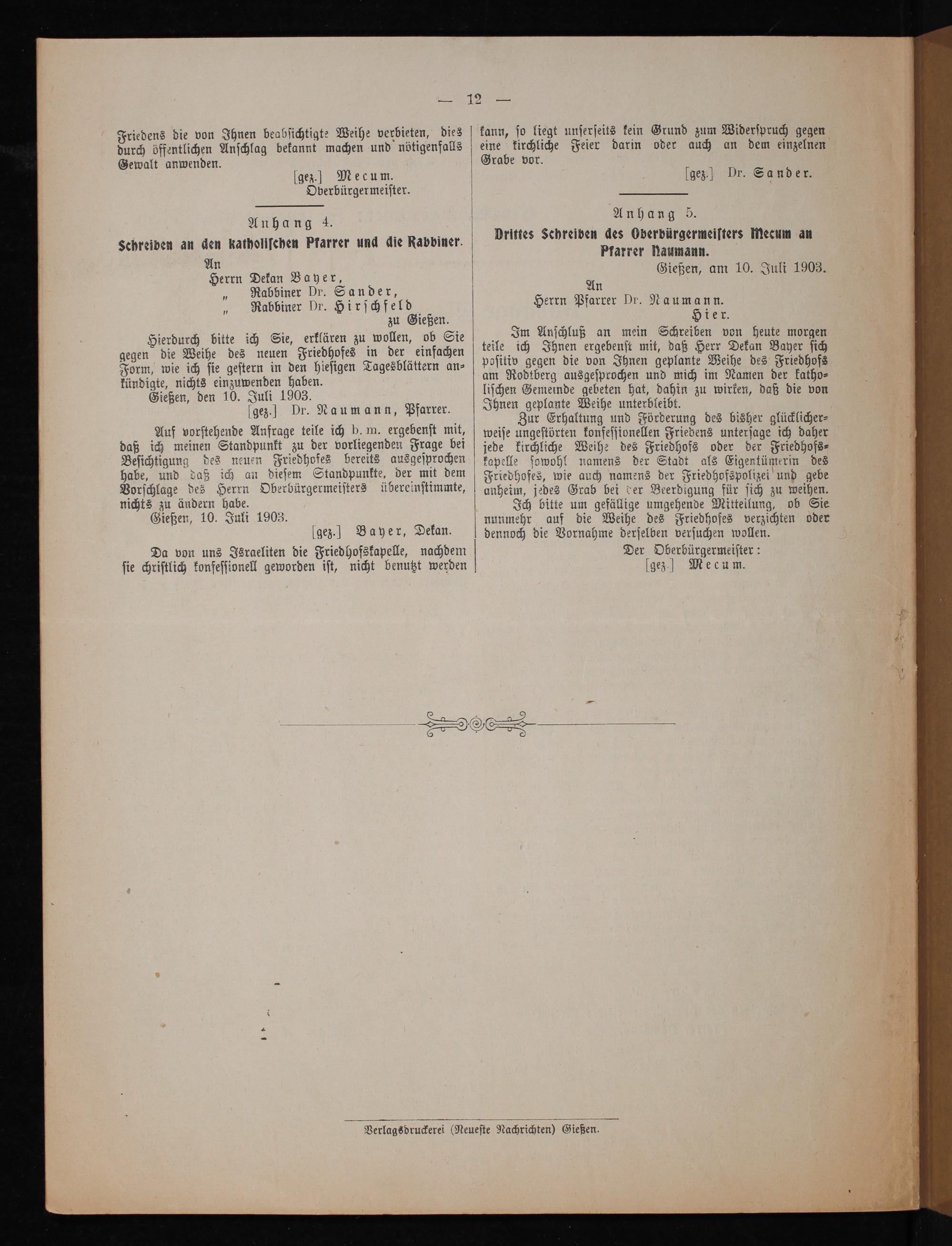 Klarheit und Wahrheit in der Angelegenheit der Friedhofsweihe zu Giessen