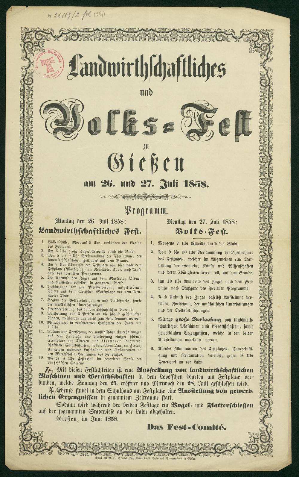 Landwirthschaftliches und Volks-Fest zu Gießen am 26. und 27. Juli 1858