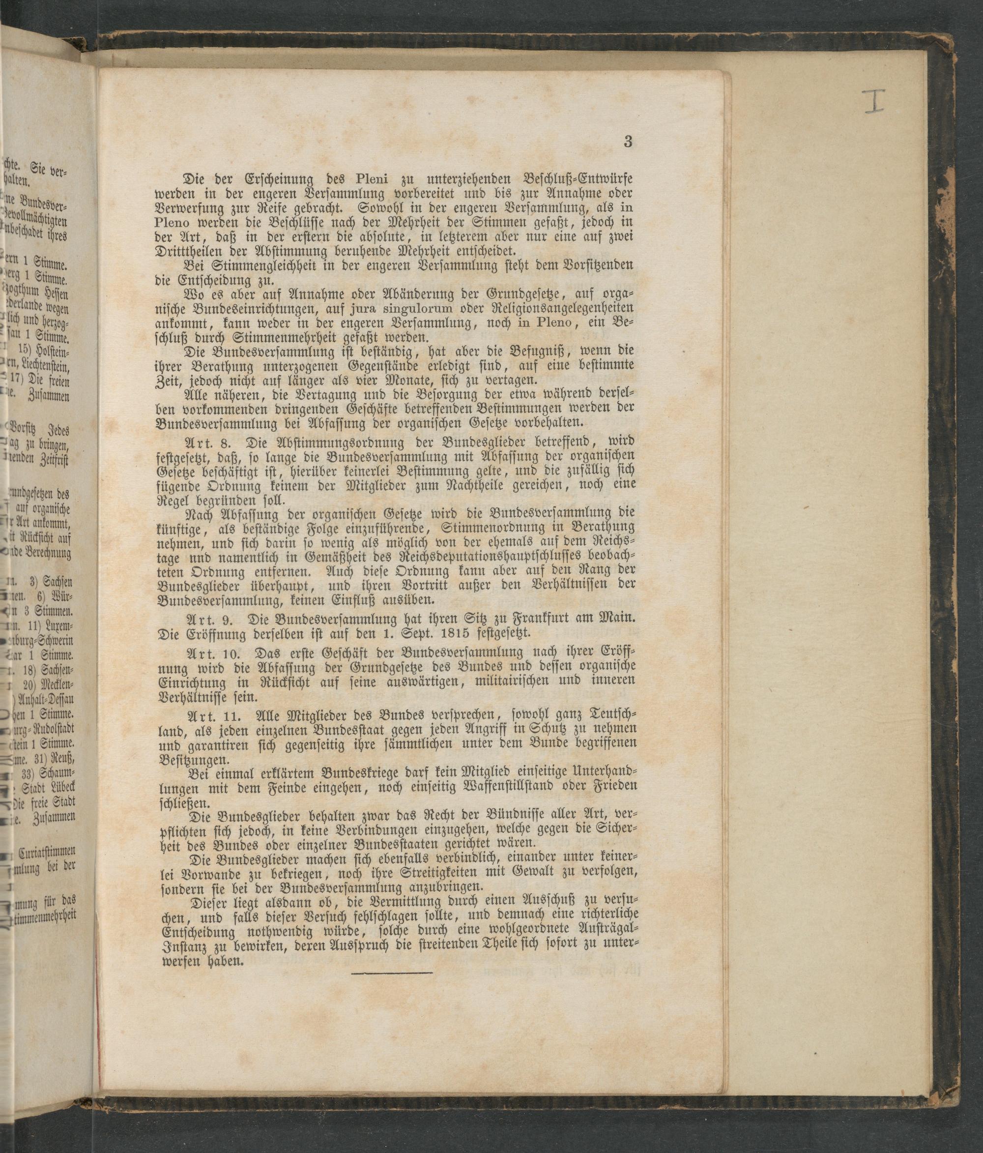 Die deutsche Bundesacte vom 8. Juni 1815 : Schlußacte der über Ausbildung und Befestigung des teutschen Bundes zu Wien gehaltenen Ministerial-Conferenzen, welche am 8. Juni 1820, dem fünften Jahrestage der Unterzeichnung der teutschen Bundesacte, zu Frankfurt am Main als allgemeines Bundesgesetz angenommen und bekannt gemacht wurde