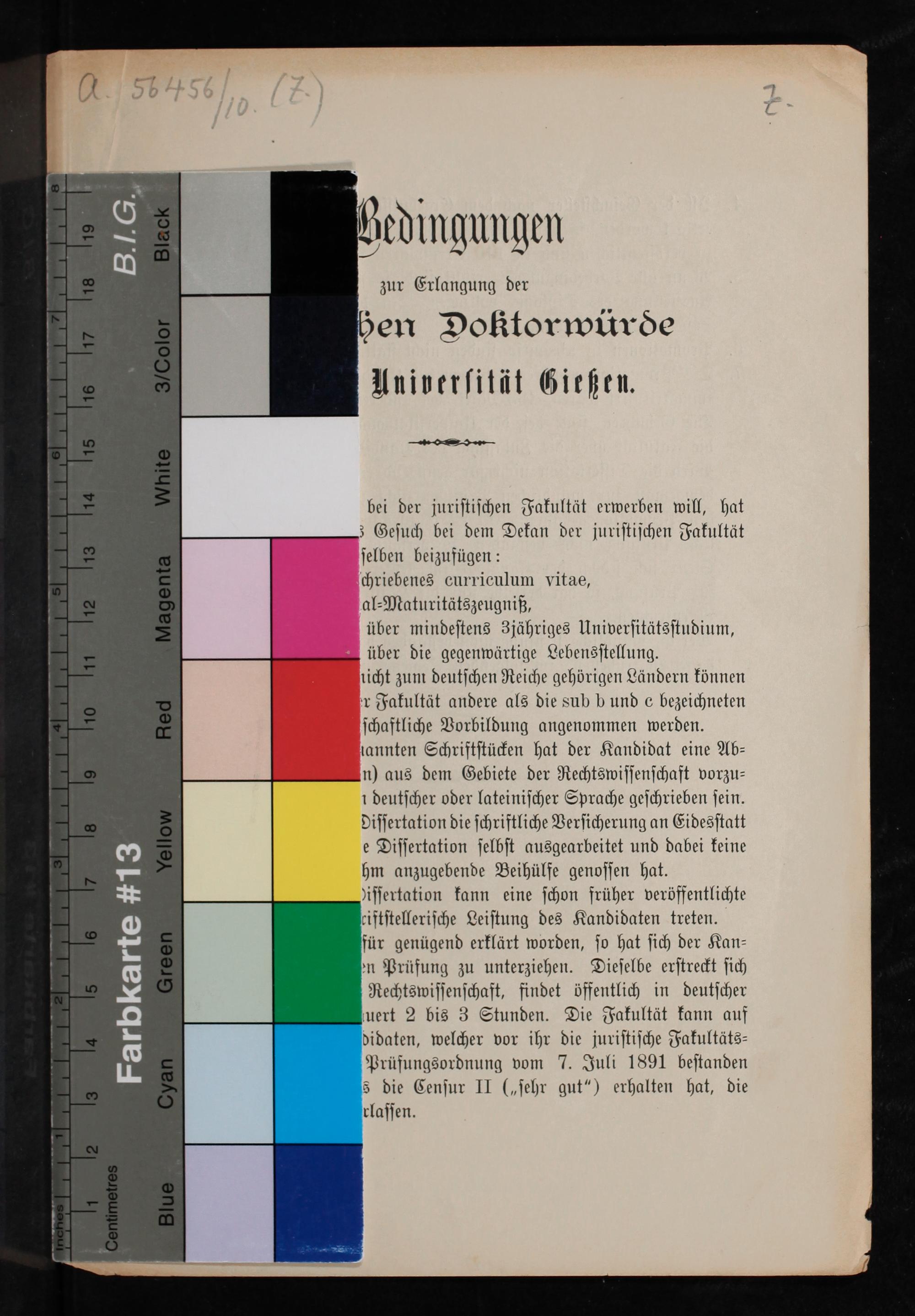 Bedingungen zur Erlangung der juristischen Doktorwürde an der Universität Gießen / [Großherzoglich Hessische Ludwigs-Universität zu Gießen, Juristische Fakultät]