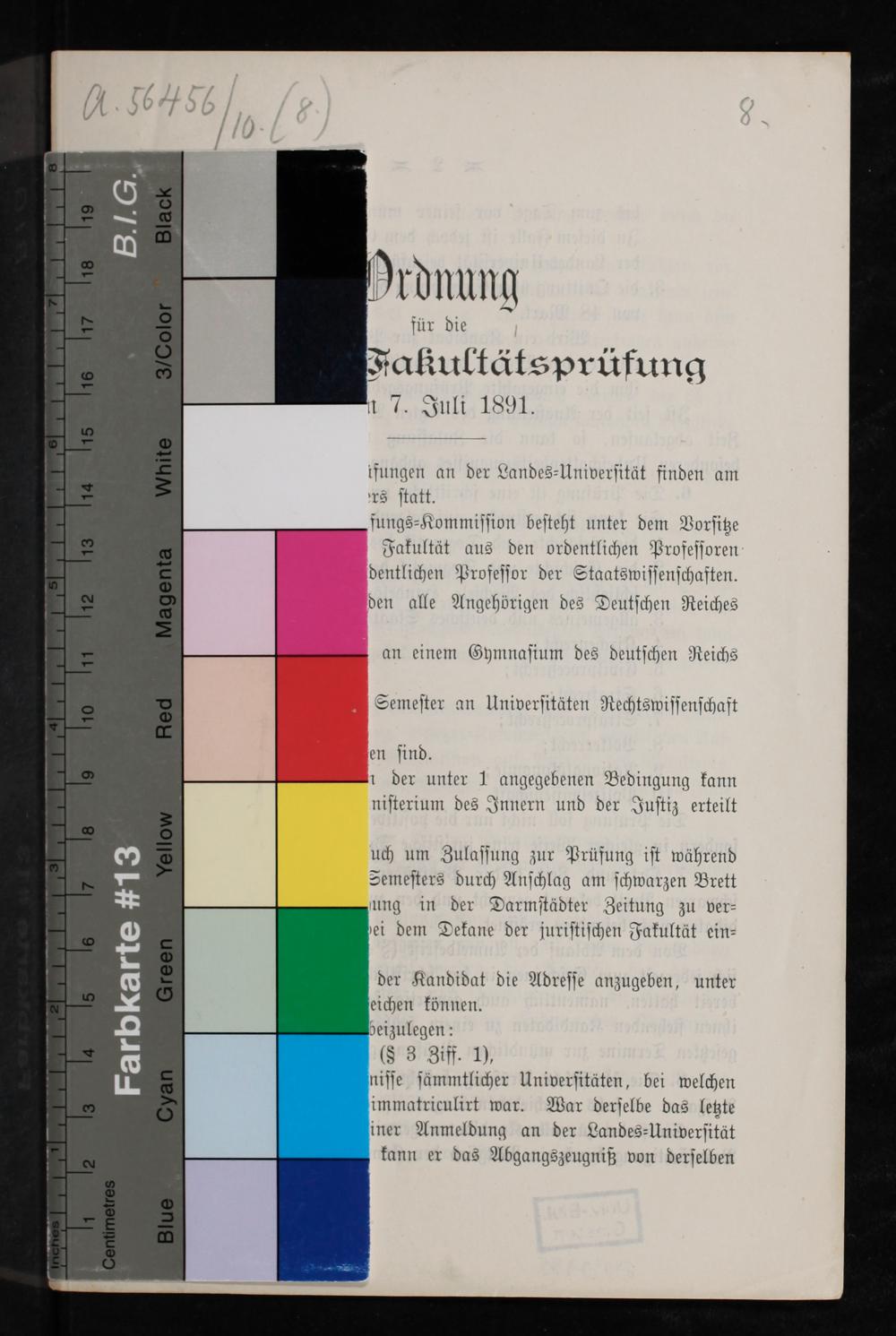 Ordnung für die juristische Fakultätsprüfung vom 7. Juli 1891 / [Großherzoglich Hessische Ludwigs-Universität zu Gießen, Juristische Fakultät]
