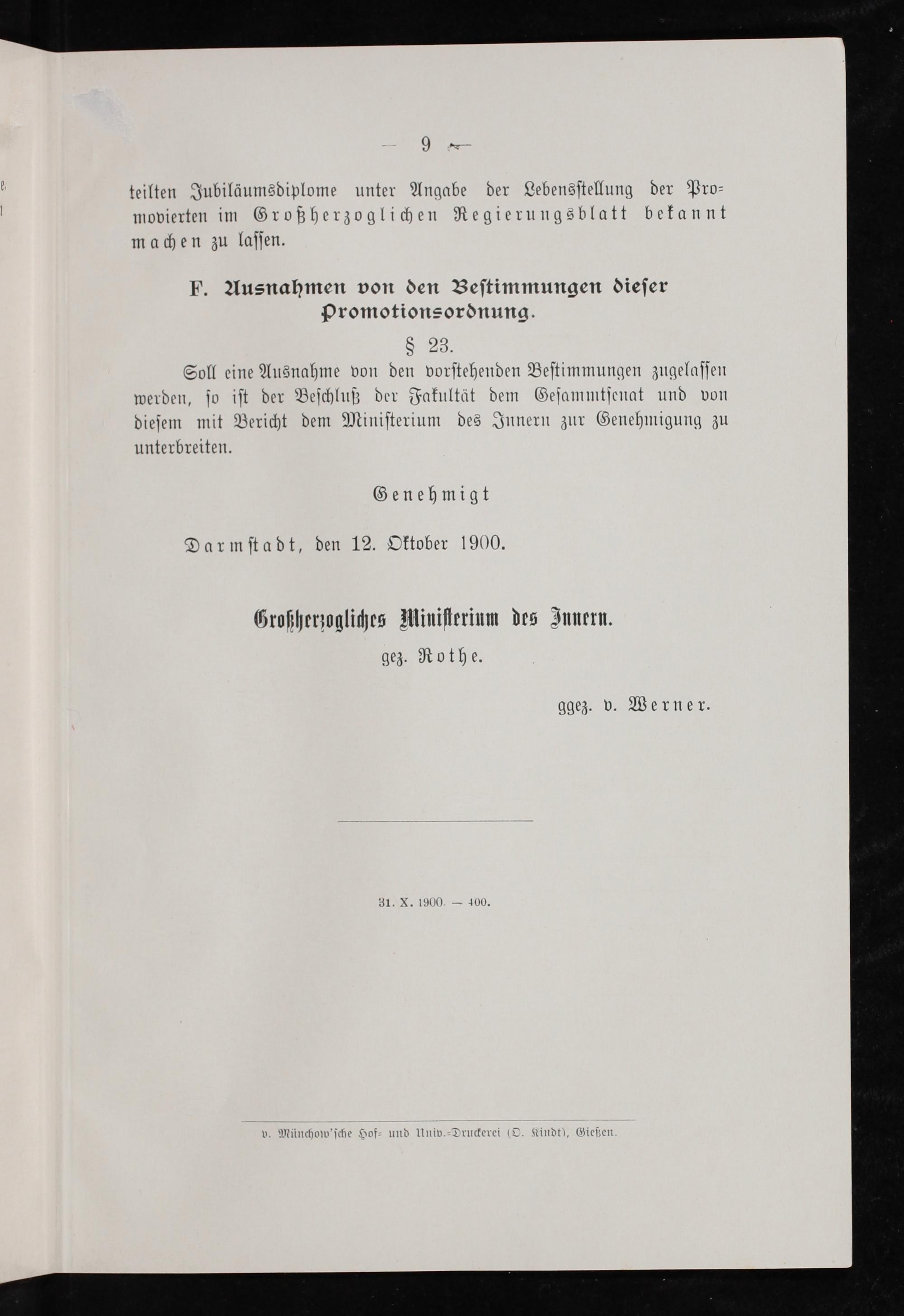 Bestimmungen über die Promotionen an der Universität Gießen : erster Nachtrag zu der Ausgabe von 1900 : internistische Promotions-Ordnung für die medizinische Fakultät (im engeren Sinn) zu Gießen / [Großherzoglich Hessische Ludwigs-Universität zu Gießen]