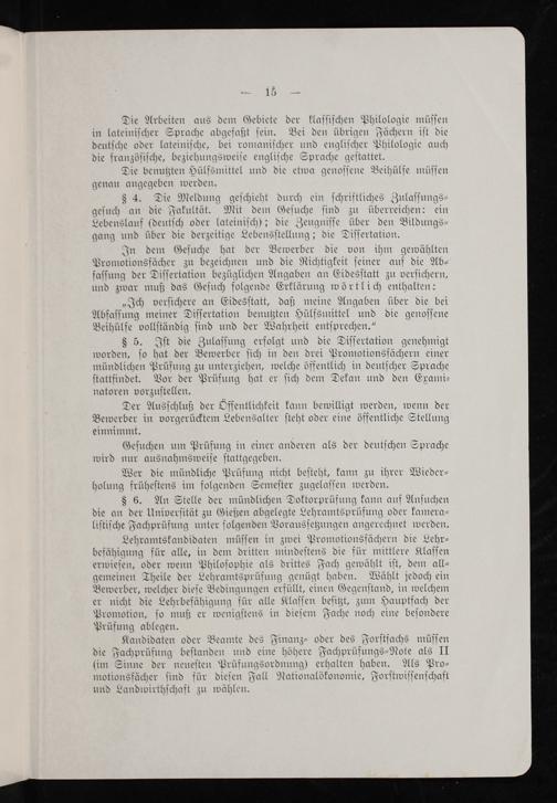 Bestimmungen über die Promotionen an der Universität Gießen / erlassen vom Großherzoglichen Ministerium des Innern am 20. Oktober 1877