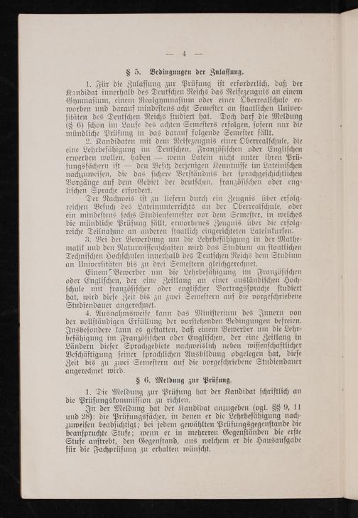 Prüfungsordnung für das höhere Lehramt im Großherzogtum Hessen : Vom 10. Januar 1908 / erlassen vom Großherzogliches Ministerium des Innern am 10. Januar 1908