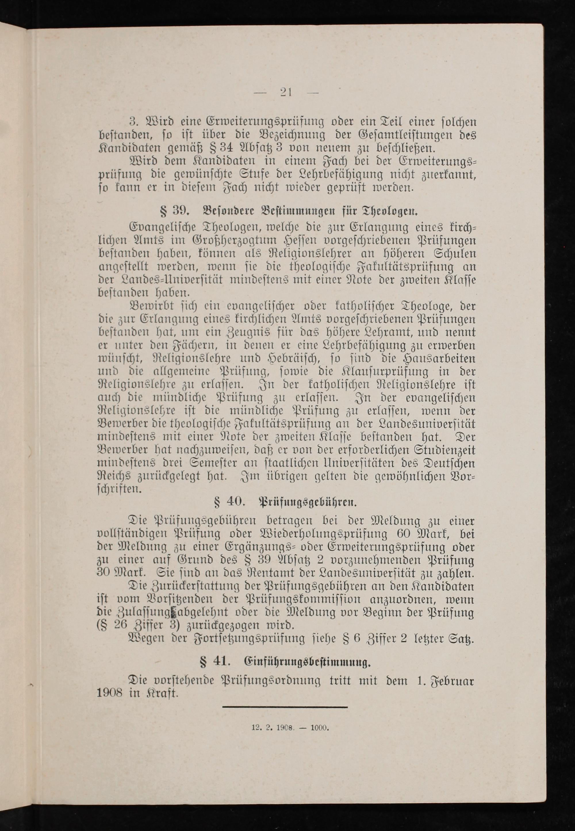 Prüfungsordnung für das höhere Lehramt im Großherzogtum Hessen : Vom 10. Januar 1908 / erlassen vom Großherzogliches Ministerium des Innern am 10. Januar 1908