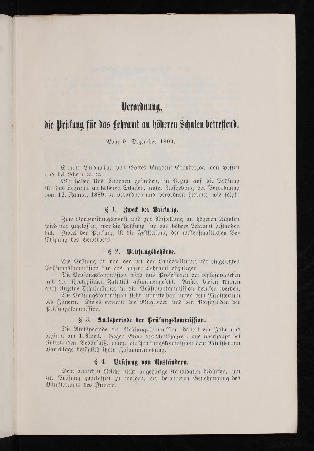 Prüfungsordnung für das höhere Lehramt im Großherzogtum Hessen : vom 9. Dezember 1899 / Ernst Ludwig