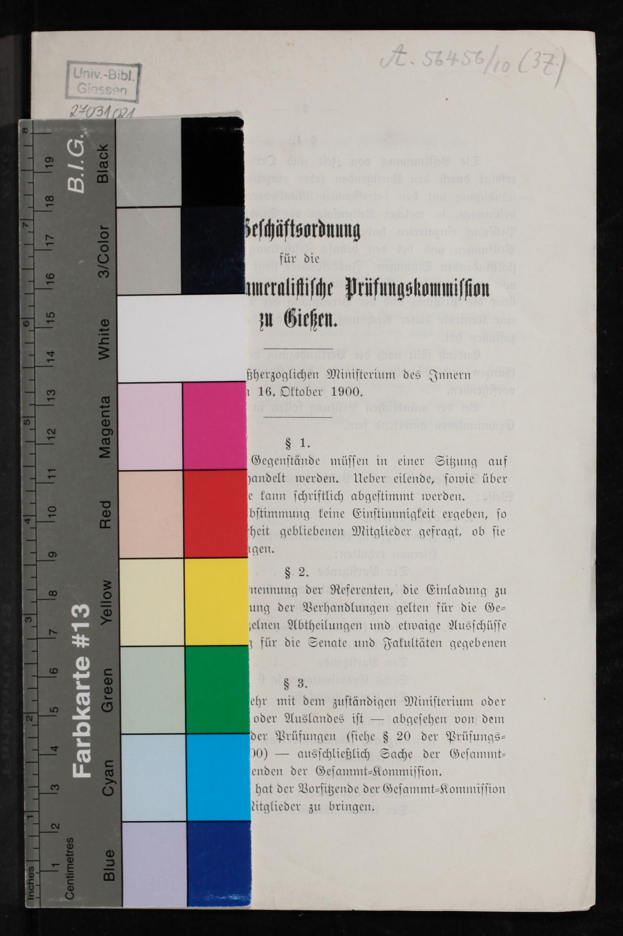 Geschäftsordnung für die Großherzogliche Cameralische Prüfungskommission zu Gießen / genehmigt vom Großherzoglichen Ministerium des Innern am 16. Oktober 1900
