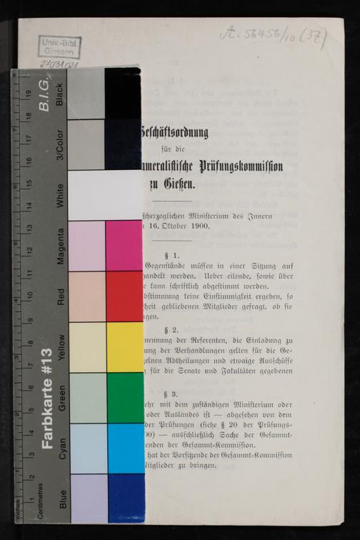 Geschäftsordnung für die Großherzogliche Cameralische Prüfungskommission zu Gießen