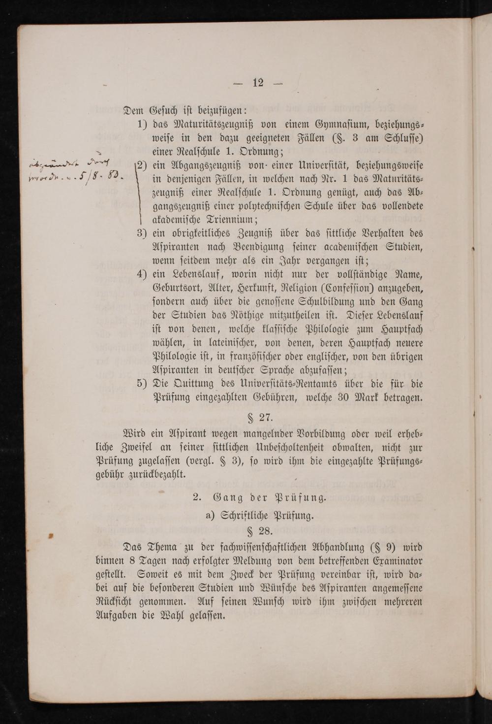 Verordnung, die Prüfungen der Aspiranten des Gymnasial- und Realschul-Lehramts betreffend : (Abdruck aus dem Großherzoglich Hessischen Regierungsblatt Nr. 17 vom 3. April 1876) / (L. S.) Ludwig, v. Starck