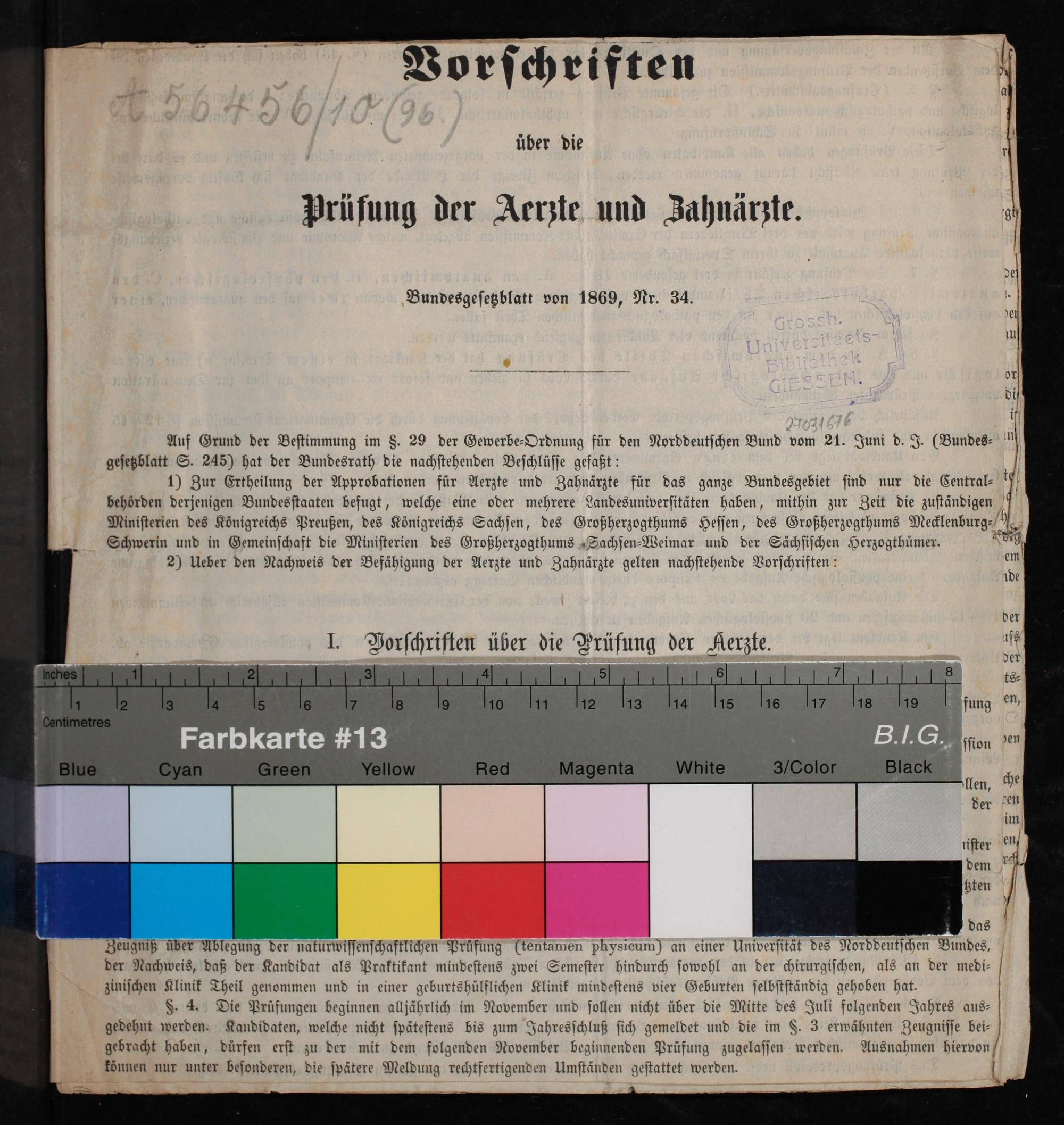 Vorschriften über die Prüfung der Aerzte und Zahnärzte / der Kanzler des Norddeutschen Bundes ; in Vertretung: Delbrück