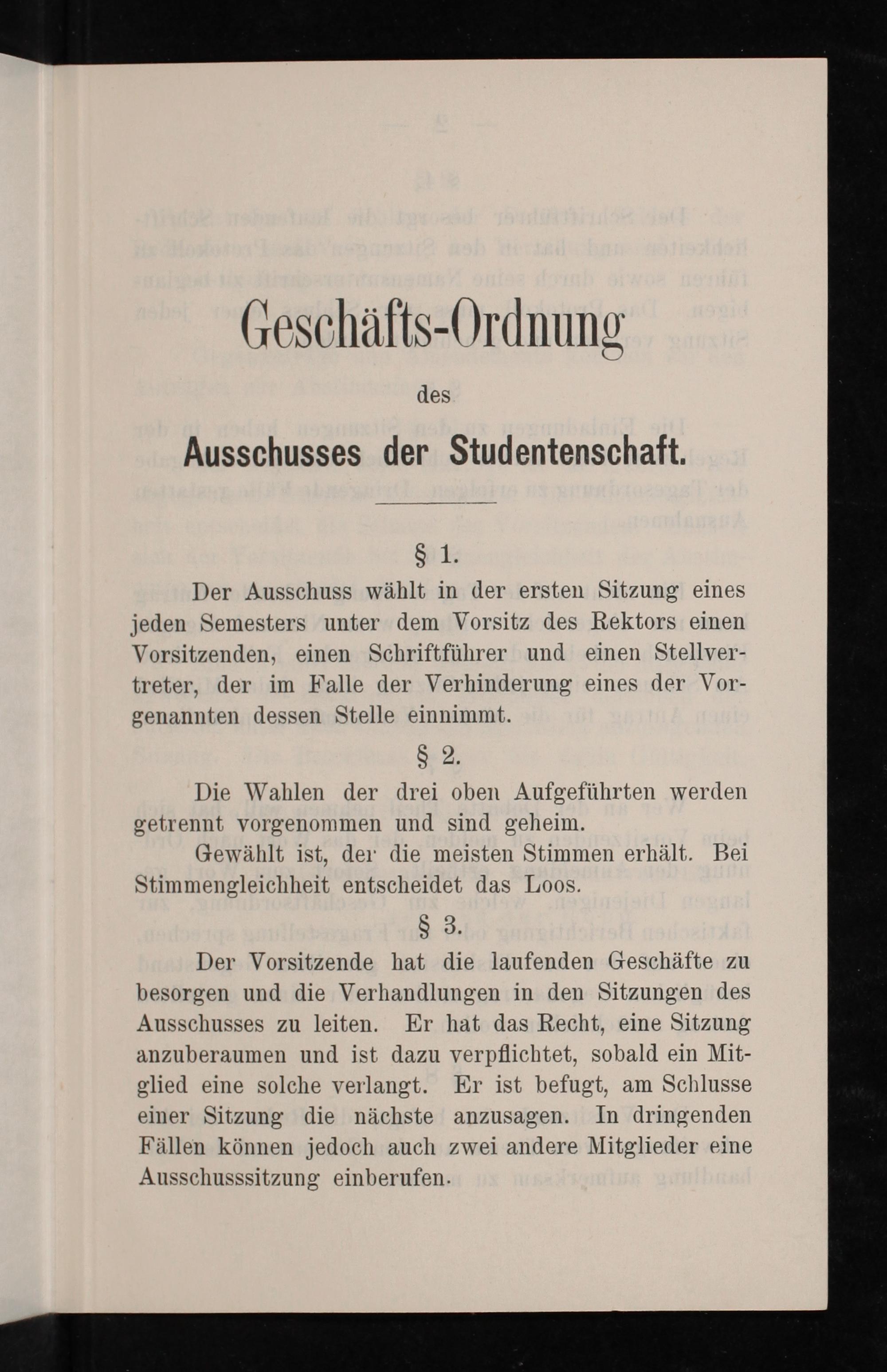 Geschäfts-Ordnung des Ausschusses der Studentenschaft / Grossherzogliche Landesuniversität ; gez. von der Ropp