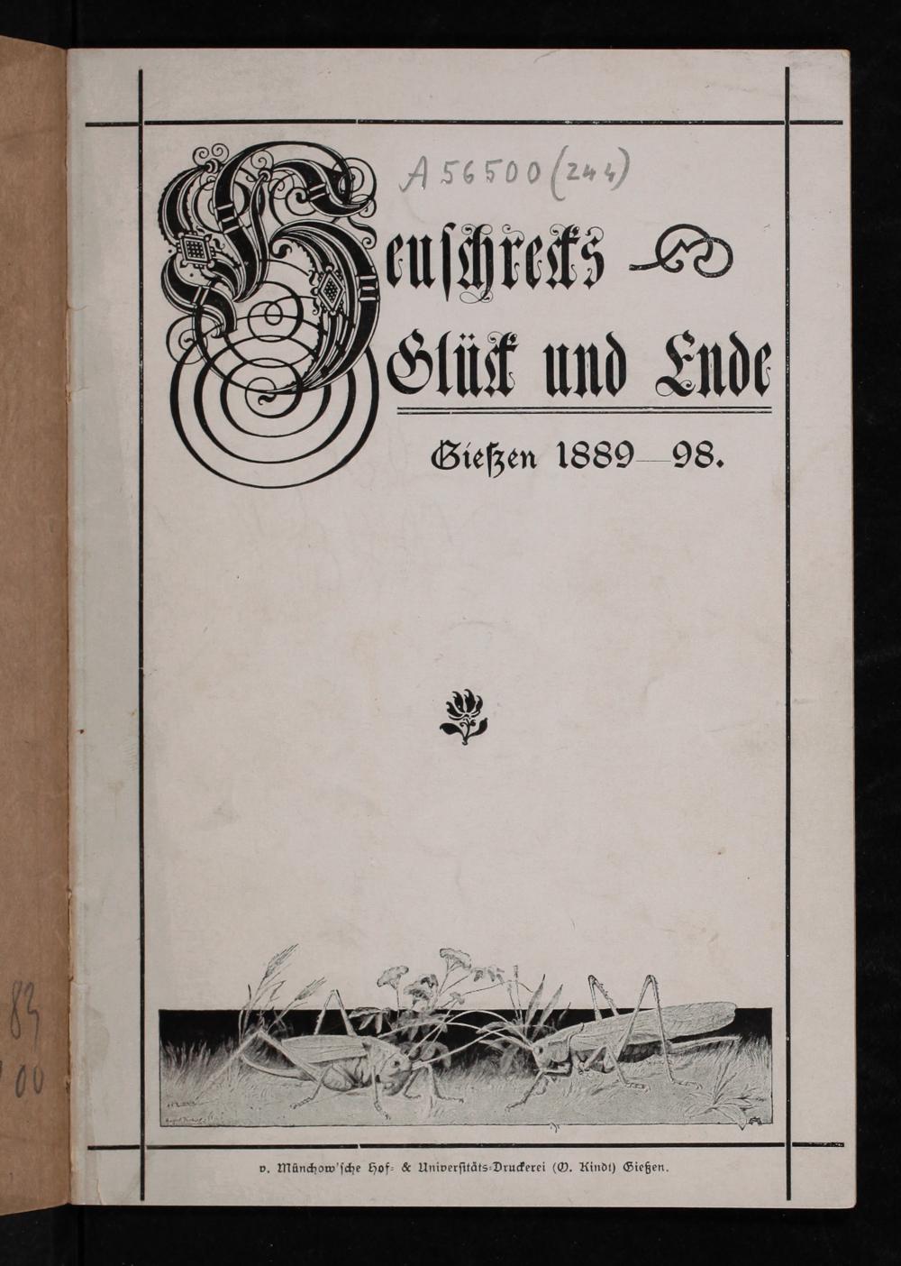 Heuschrecks Glück und Ende, Gießen 1889-98 / [Verfasser: u.a. G. K. und E. N.]