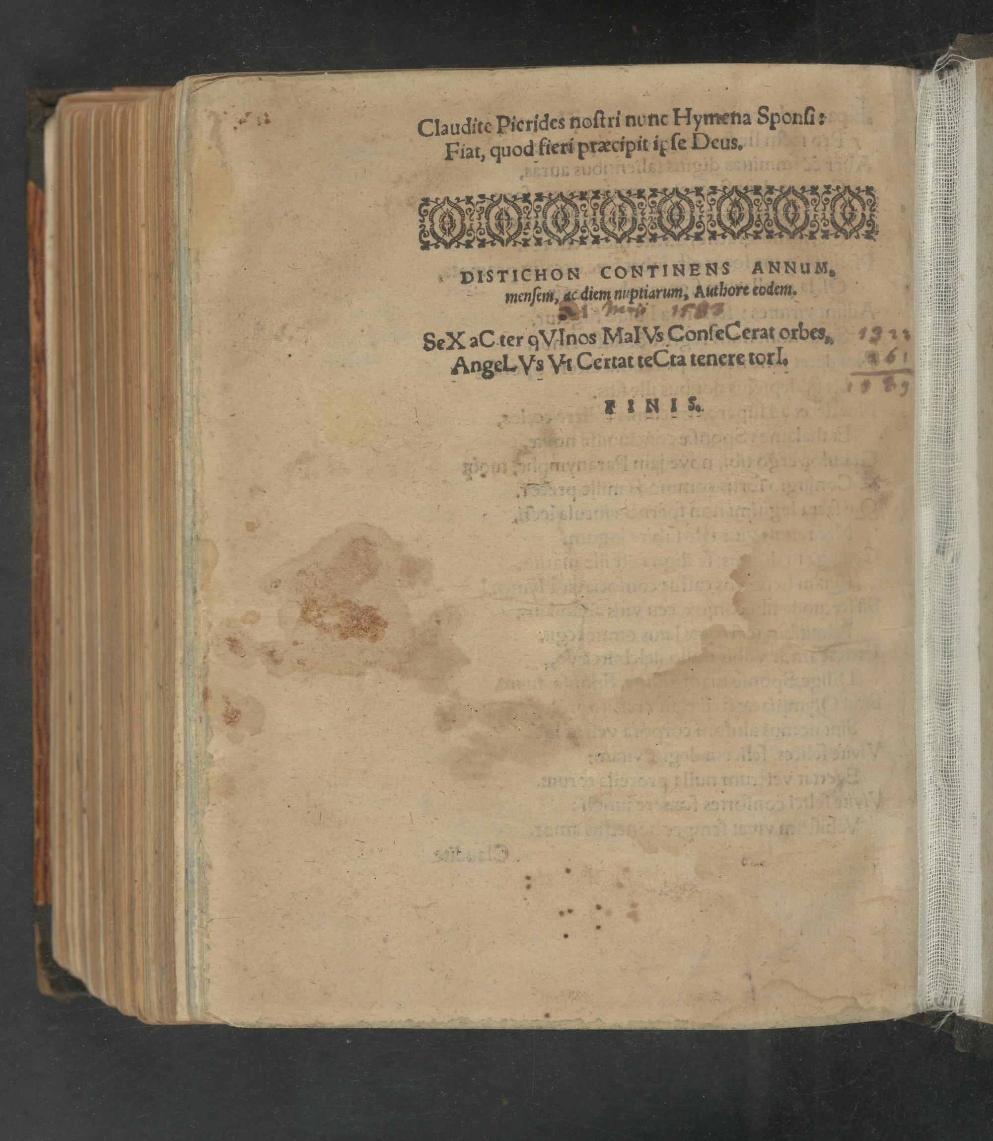 Epithalamion In Nuptias Ornatissimi, Doctissimiq[ue] Juvenis Dn. M. Iohannis Angeli Vvhalensis, Scholæ Kirdorfianæ moderatoris vigilantissimi: & castissimæ juxta ac honestissimæ virginis Gerturdis, integerrimi viri Dn. Gerogii Vviderholdi, civis Homburgenis ad Ohmam prudentissimi, filiæ, honoris / ergò cantatum à Matthia Vigelio Niddano Veteravio